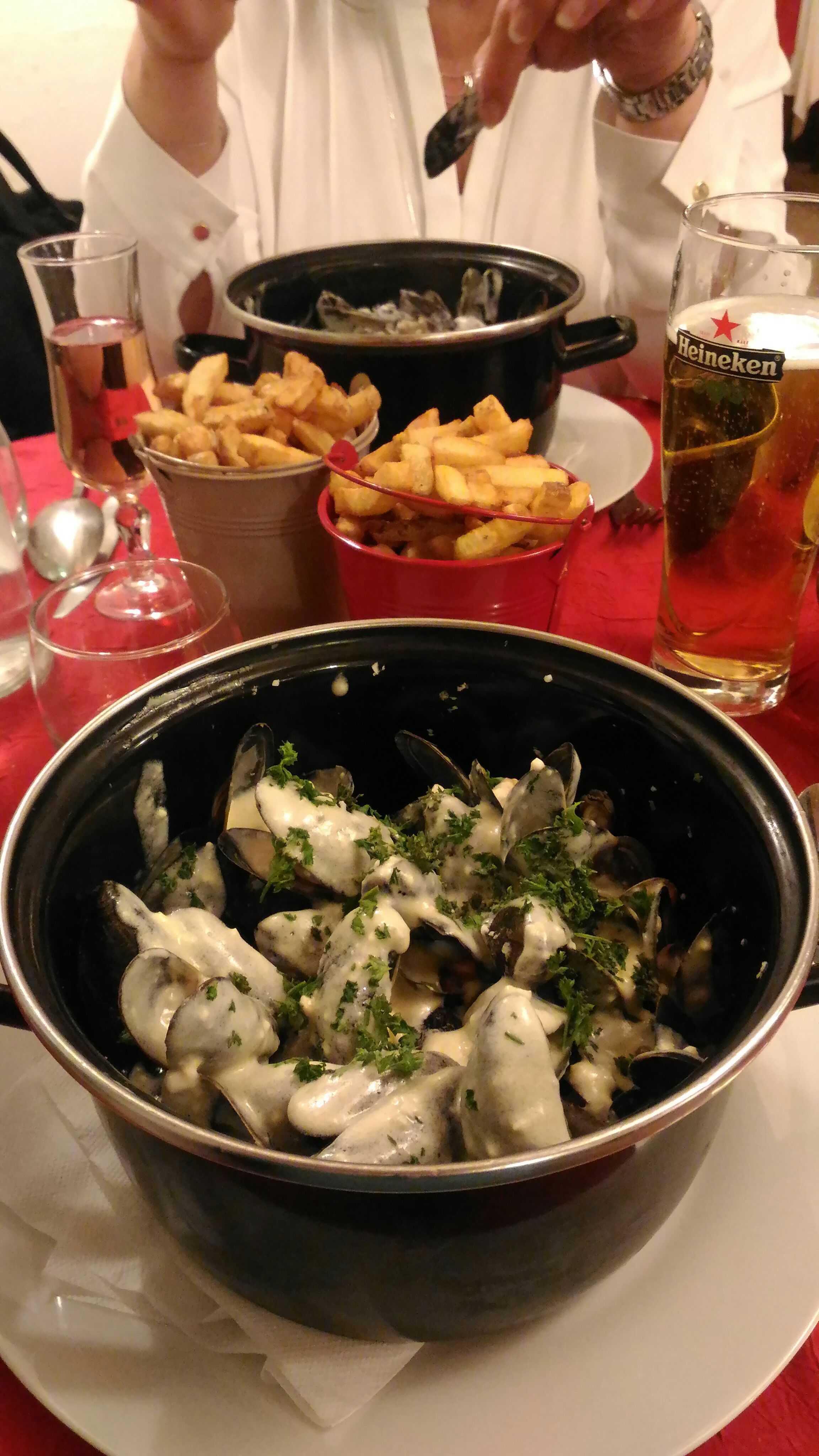 Un tête à tête . vraiment tout seul pour un jeudi.De bonnes Moules et un bon dessert La patronne au top. Après d autre visites en famille et entre Amis ,c'est toujours aussi plaisant ,Bon et un accueil au top .