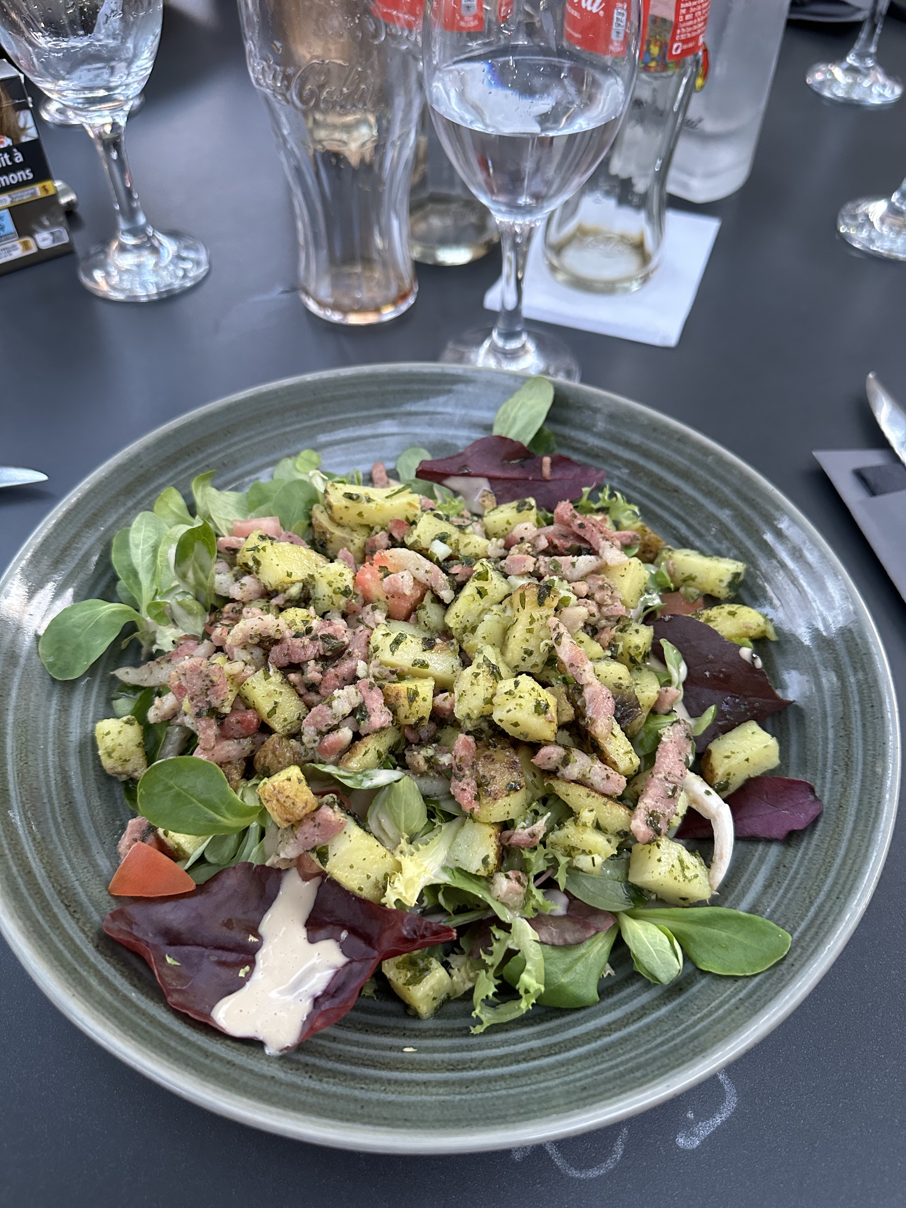 Nous avons pris une salade avec des lardons (verts)... nous ne l'avons pas touché mais ca n'a pas choqué la serveuse qui l'a repris pleine... ensuite nous avons été mis à la porte car trop tard pour le dessert.... nous sommes de Saint-Priest mais nous avons été assez déçu à chaque visite !!
