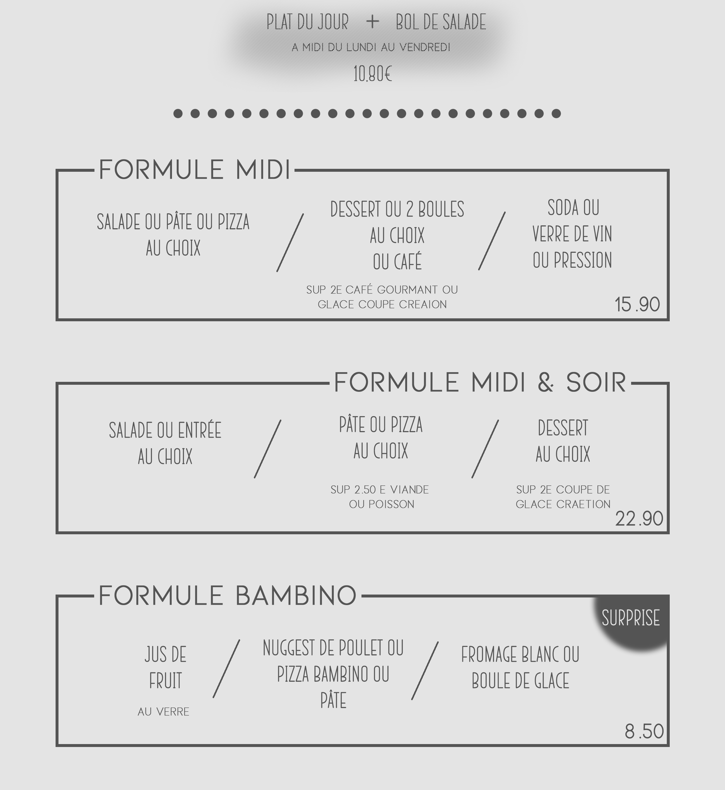 La cuisine est très bonne. Les pizzas meilleures sur place. La terrasse est très appréciée l'été. A l'intérieur, il peut y avoir la climatisation, par contre, en terme de son, ça peut vite ressembler à une cafétéria tant ça résonne, dès qu'il y a du monde. Les serveurs et serveuses sont très sympathiques et pro.