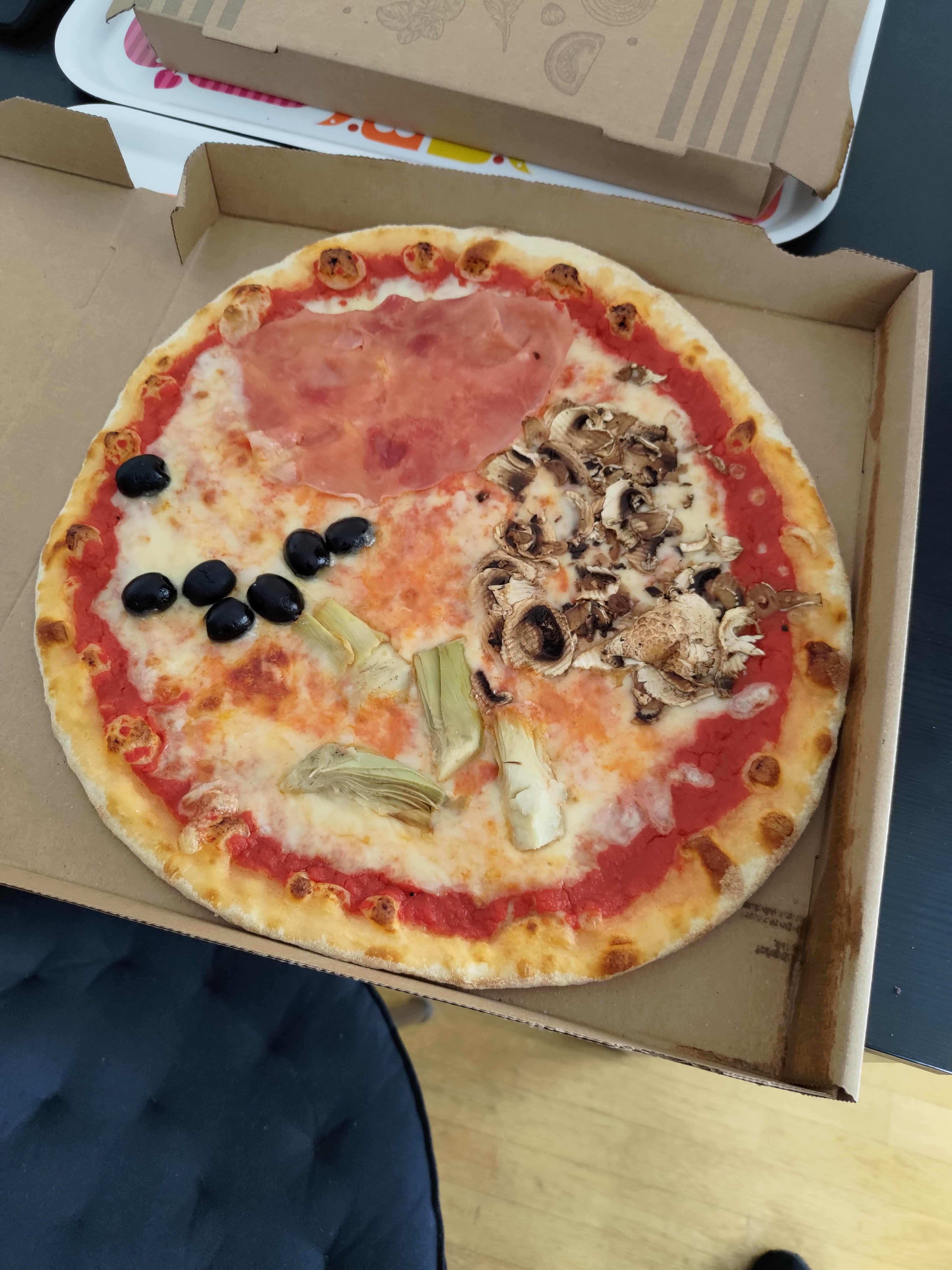Commande en livraison. Aucun goût, les pizzas ne sont même pas découpés en part, pas de sauces piquantes. Très déçu du coup on n'a mangé qu'une part des 2 pizzas commandés.