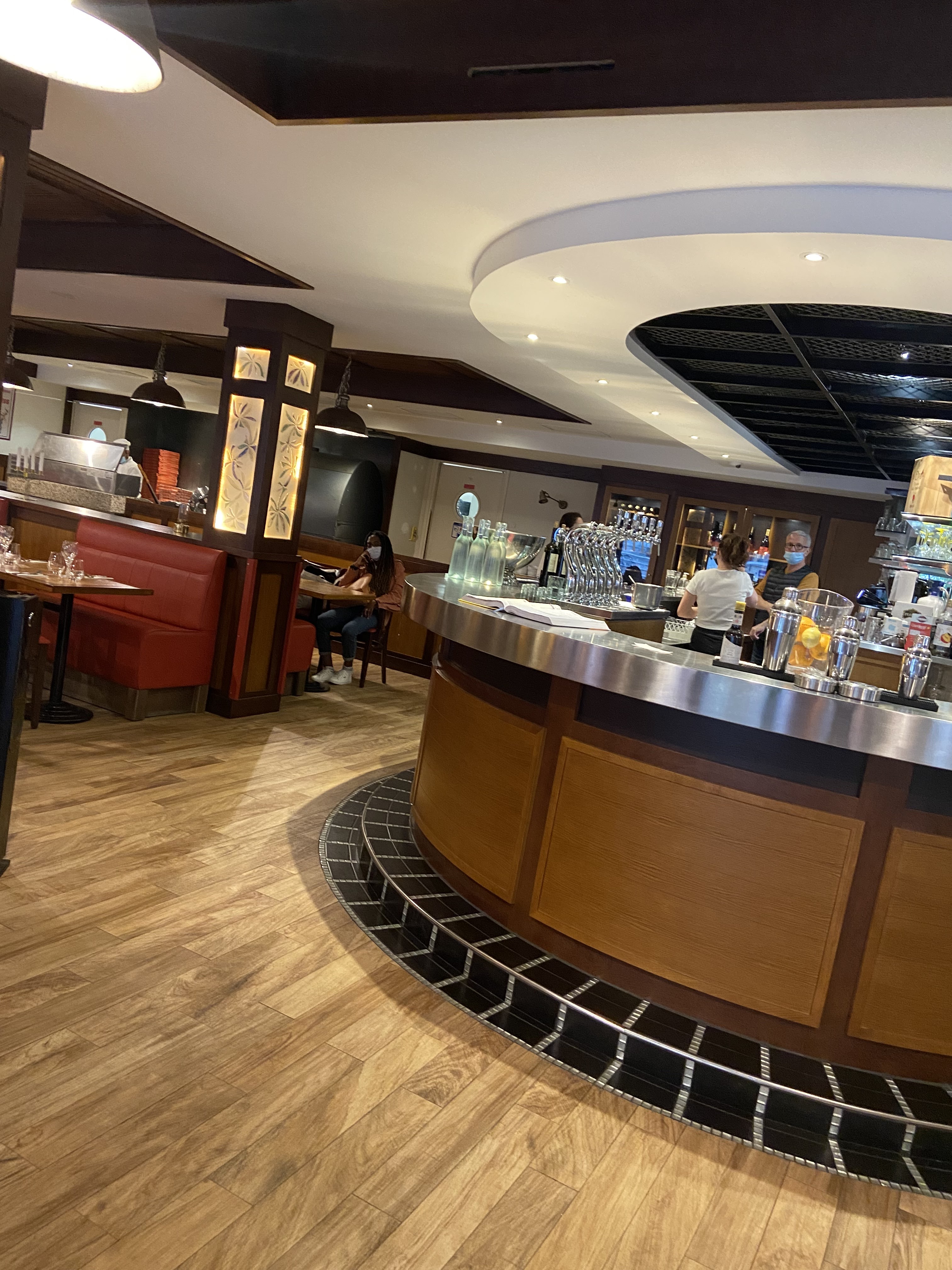 Beau restaurant mais le reste ne suit pas. Nos pizzas brulées je le dis à la serveuse qui en parle à un autre serveur sûrement le responsable qui me dit que nous sommes les seuls à lui faire remarquer . Quand on ne sait pas être à l'écoute du client. N'accepte pas la critique et remet en question nos dires. Alors que nous lui avons montré les pizzas. Trop cher pour 2 pizzas brulées. Et Trop déçue je n'y retournerai plus.