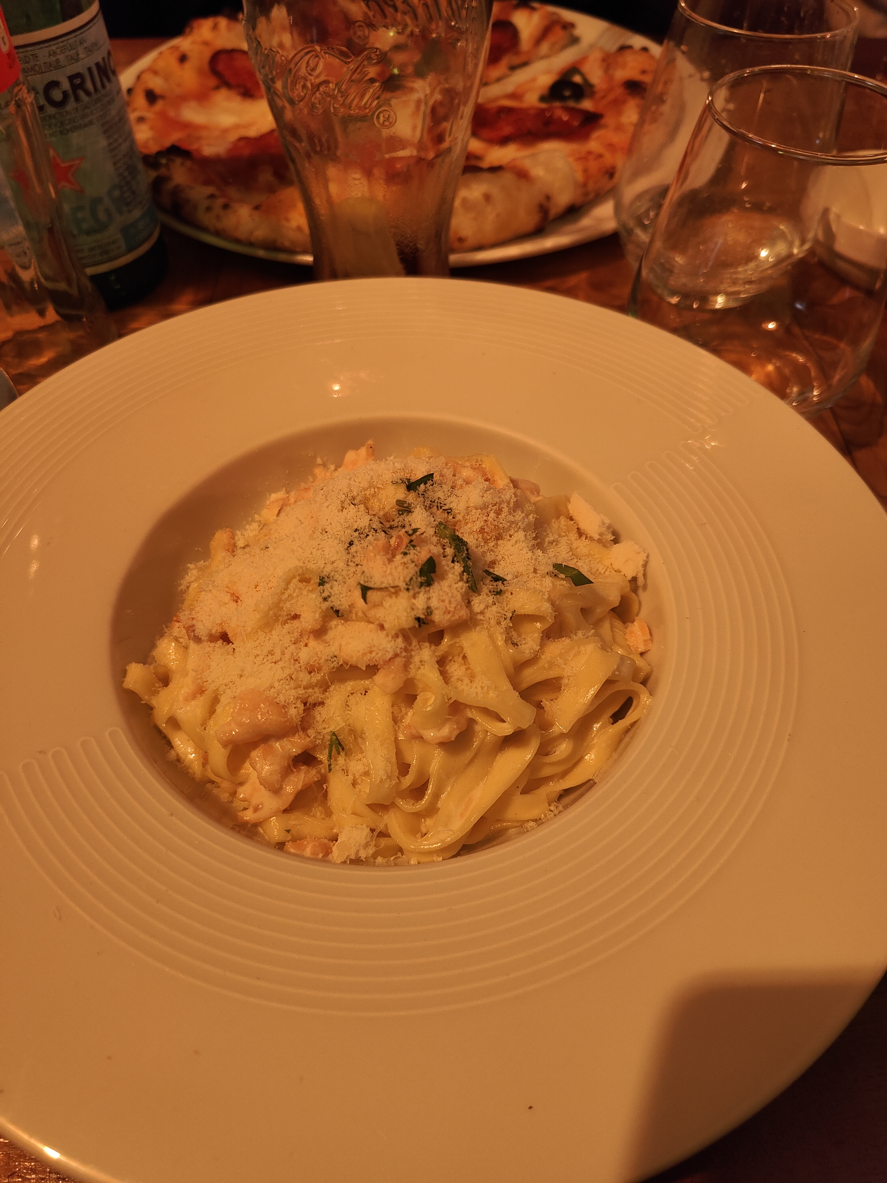 Salades 14€ mal assaisonnées et pas terribles .. pâtes carbo franchement pas extraordinaires.Service pas super chaleureux. Déçu de ce resto dont j’avais entendu de bonnes critiques 🤷🏻♀️Heureusement Les pizzas étaient bonnes.