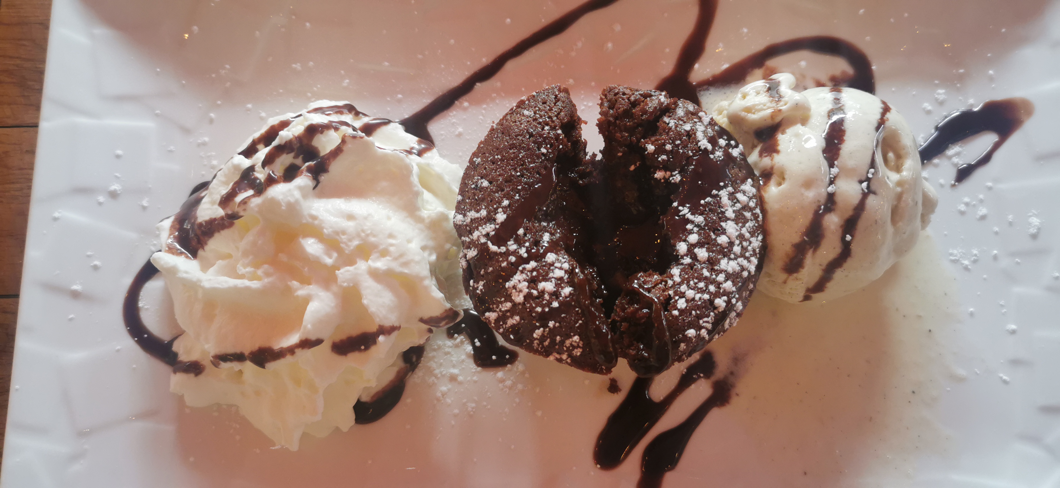 Très bon resto italien . Service rapide. Toutefois j ai commandé le fondant au chocolat en m assurant auprès de la jeune serveuse que le cœur était bien coulant. Après confirmation je commande ce dessert. Le gâteau était plutôt sec et sans cœur fondant. Je l ai signalé mais on ne m en a pas donné un autre. Elle a juste dit qu il est habituellement bien fondant et qu elle s en assurera pour la prochaine fois. Évidemment je ne commanderai plus ce dessert . Aucun geste n a été fait sur l addition alors que je n ai pris que 2 bouchées….