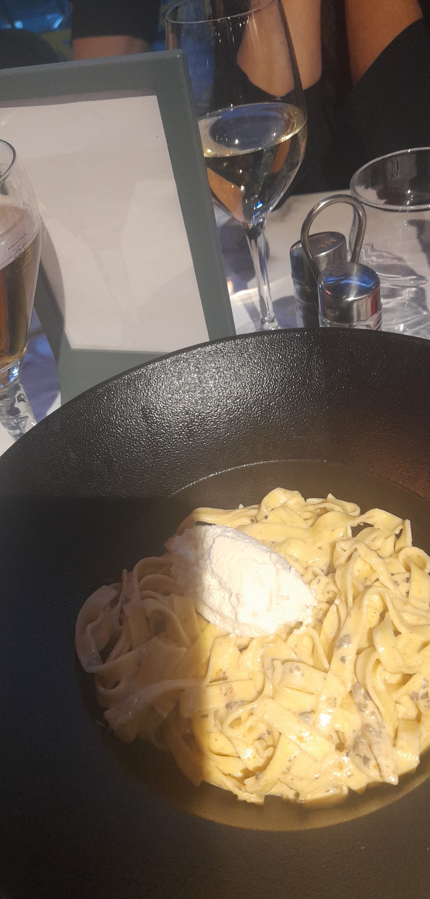 Nous somme venus manger à 2 ce soir nous avions été très dessus par les plat nous avions pris les pâtes carbo et truffes, elles étaient fades d’aucun goût la crème ce séparé peu de garniture avec les pâtes étant moi même cuisinier je trouve sa inadmissible d’envoyer des plat pareille surtout que en lisant les autres commentaires on aperçoit que les pâtes sont vraiment pas appréciées qu’est-ce qu’ils attendent l’es cuisinier pour réagir surtout que ce n’est pas compliquer de réaliser ce genre de plat . Nous nous en sommes tirés pour 57€ malgré les desserts offert je trouve sa très chère pour ce que l’on a manger au moin offrir les plat . J’espère que l’es cuisinier réagirons et proposeront de meilleurs plats à l’avenir mais pour le moment ce n’est pas digne d’un restaurant mais plutôt d’une cantine . Merci quand même pour l’accueille et le professionnalisme de la serveuse . Bonne continuation.