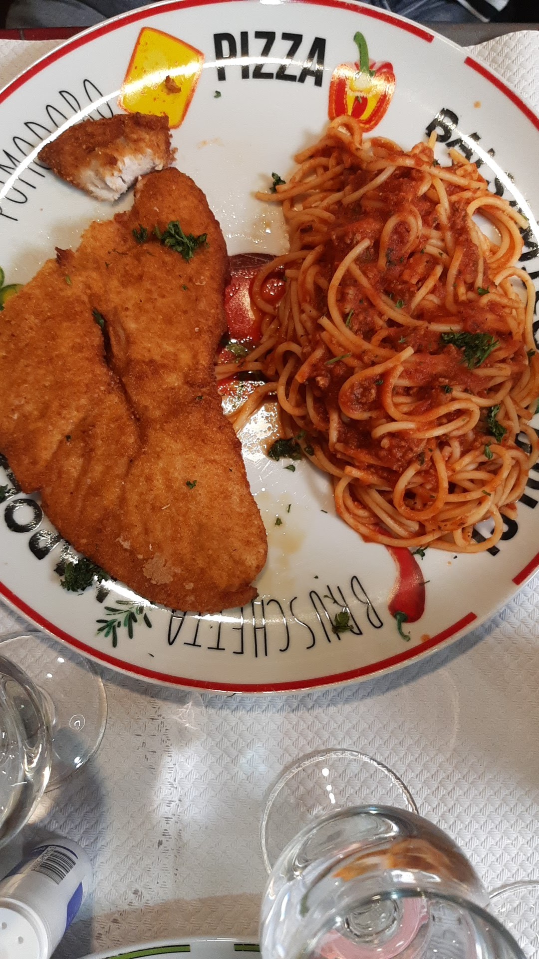 Pâtes a la carbonara pour mon mari était très bonne et ma pizza ,miel chèvre mozza au top Ensuite ,avons eu un très bon accueil, serveur très sympathique.