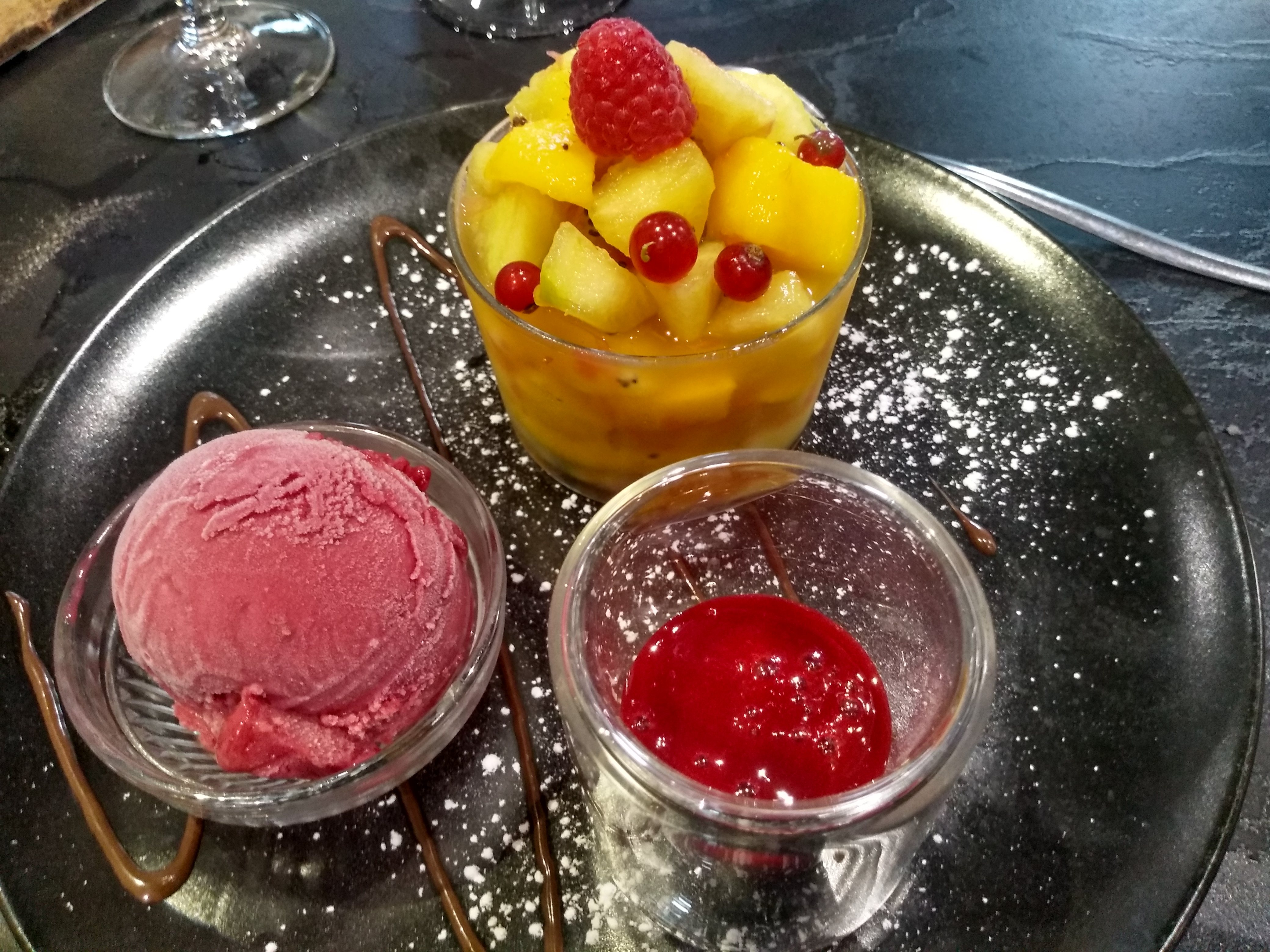 Serveurs agréables et carte variée sans être trop chargée. Les légumes sont biens cuits, la viande également, avec ce petit goût de thym, excellent. Grands choix de desserts maison. Je m'attendais à avoir un coeur framboise plus généreux mais très bon dessert tout de même.