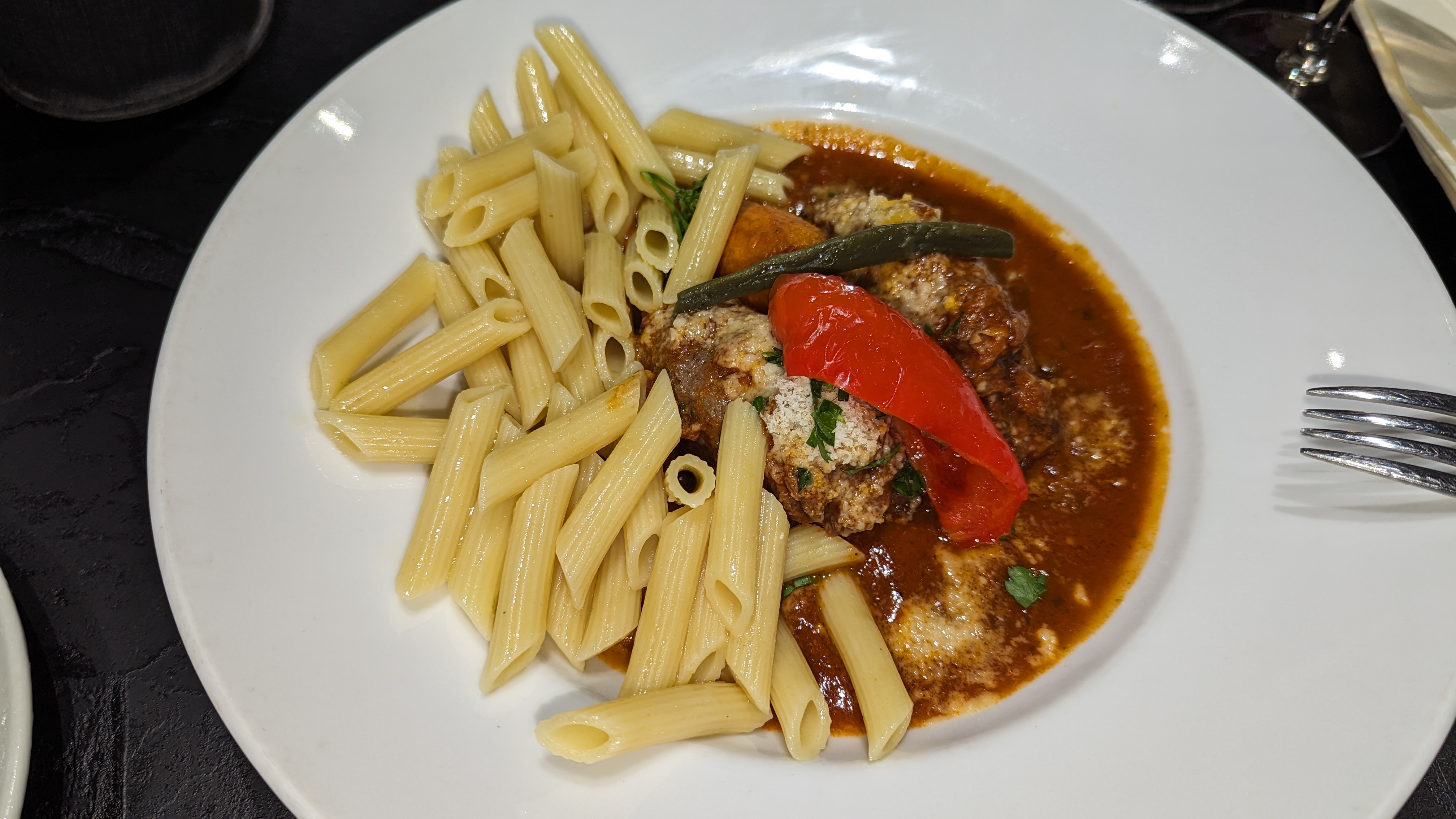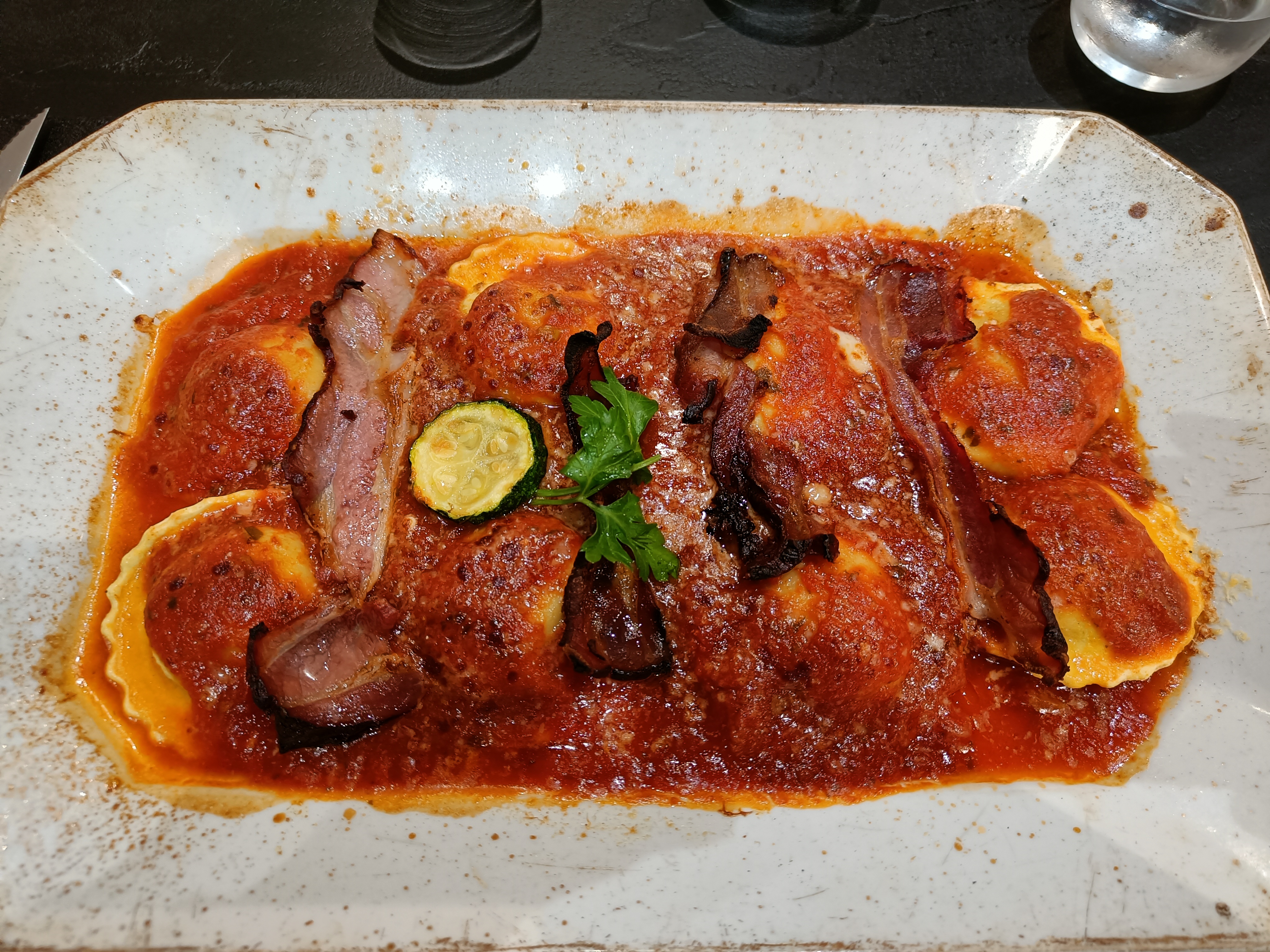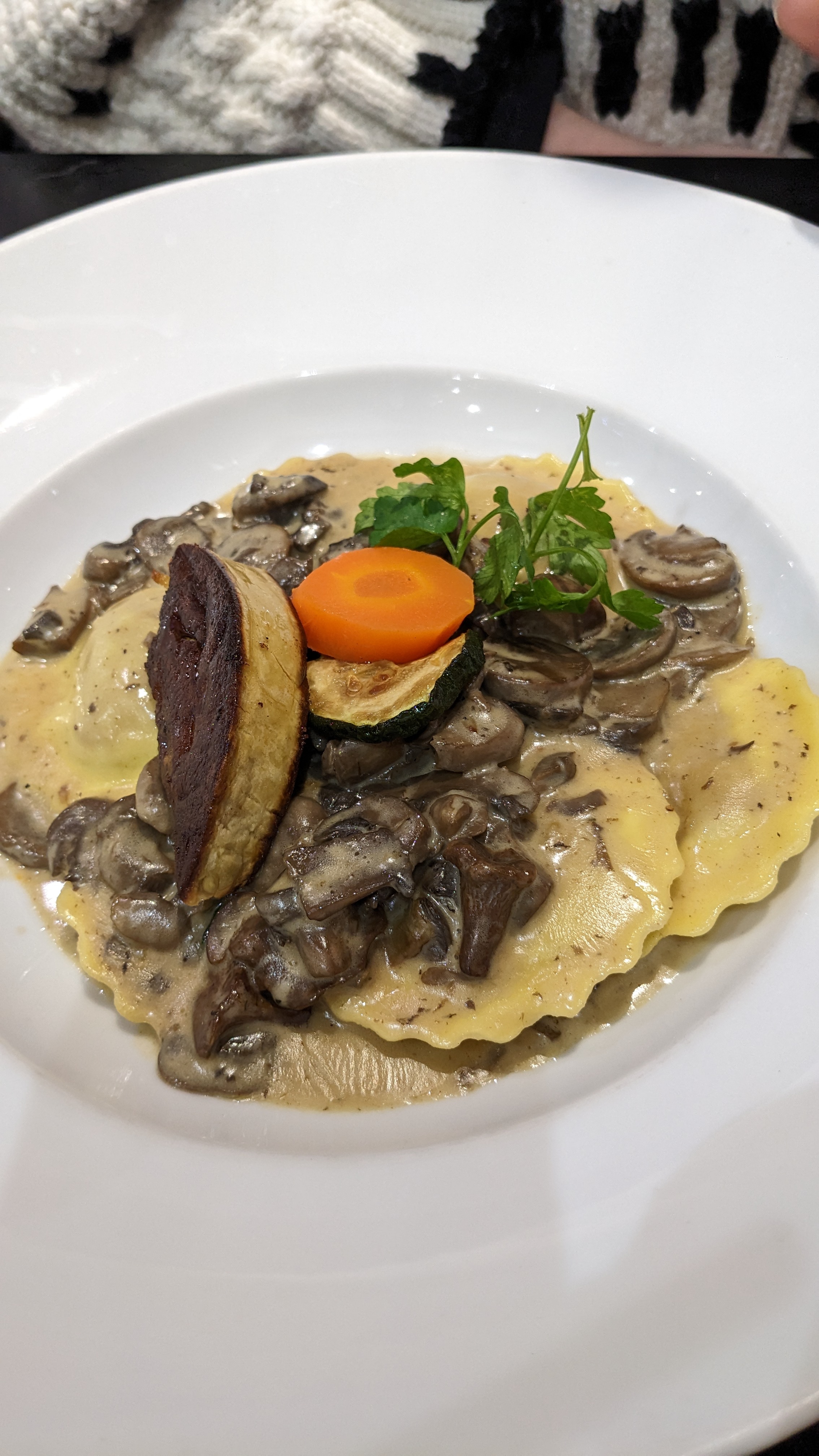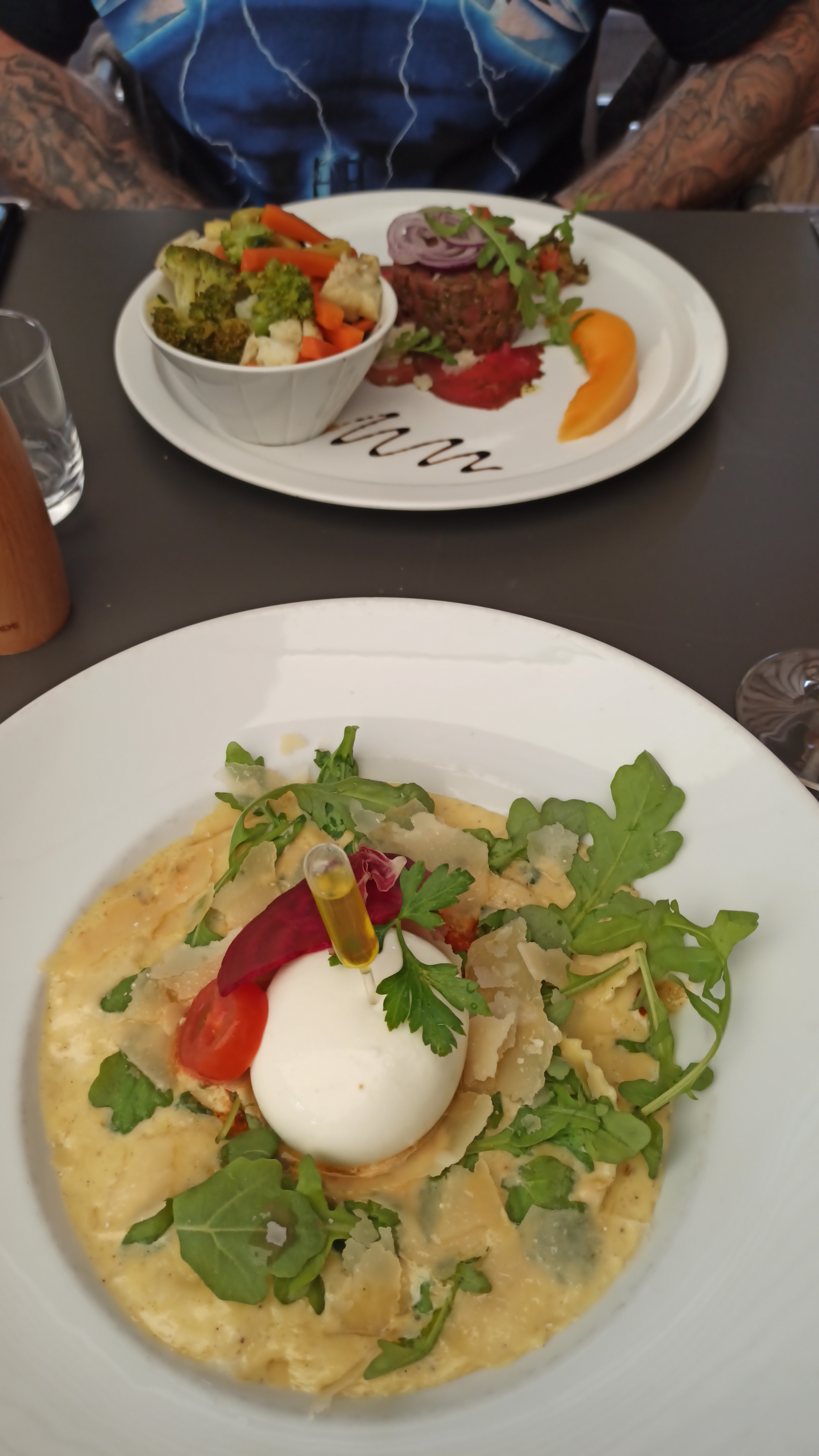 Je suis mitigé, j'ai pris un osso buco avec des pâtes. La cuisson de la viande était parfaite, mais la sauce trop grasse, et les pâtes aussi revenu dans de l'huile, dommage. Et pour avoir des légumes il faut mettre un supplément de 3,50€, je trouve cela abusé. Dans tous les restaurants où je vais habituellement, les légumes sont toujours avec le plat, et non en supplément. Deux de mes amis on prit les raviolies, ils sont restés sûr leur faim, la portion était petite.