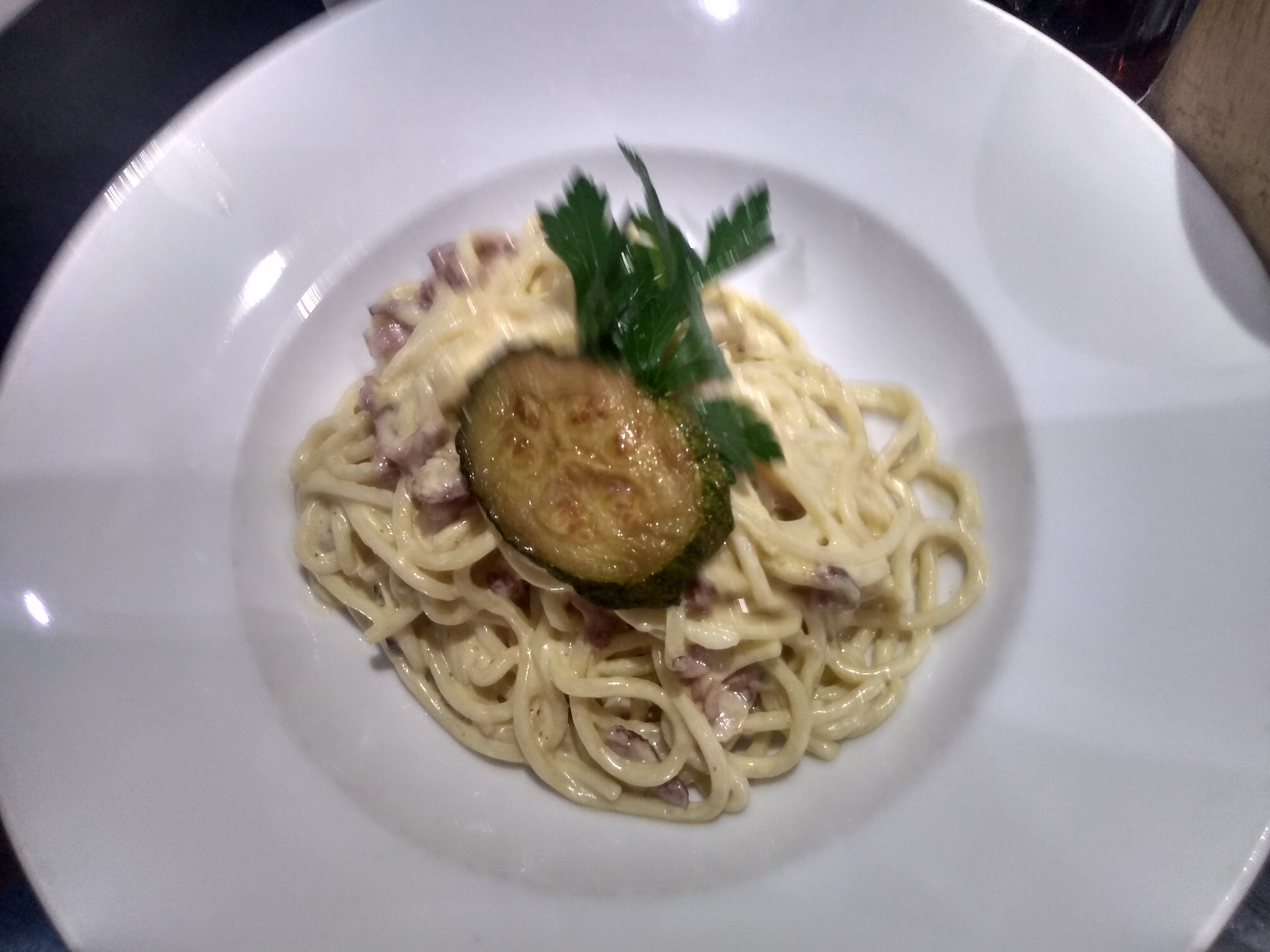 Arrivés dans un moment de rush, nous avons bien été accueilli, tout de suite placés à notre table. On nous a pris les commandes au bout de 10min, et le service a été également rapide puisqu'en 15min nos repas et boissons étaient sur la table. Nous avions pris : spaghetti carbonara (crémeuse à souhait) et pizza bufala. Attention à l'huile piquante, elle est vraiment piquante ! On reviendra avec plaisir quand on sera dans le coin !