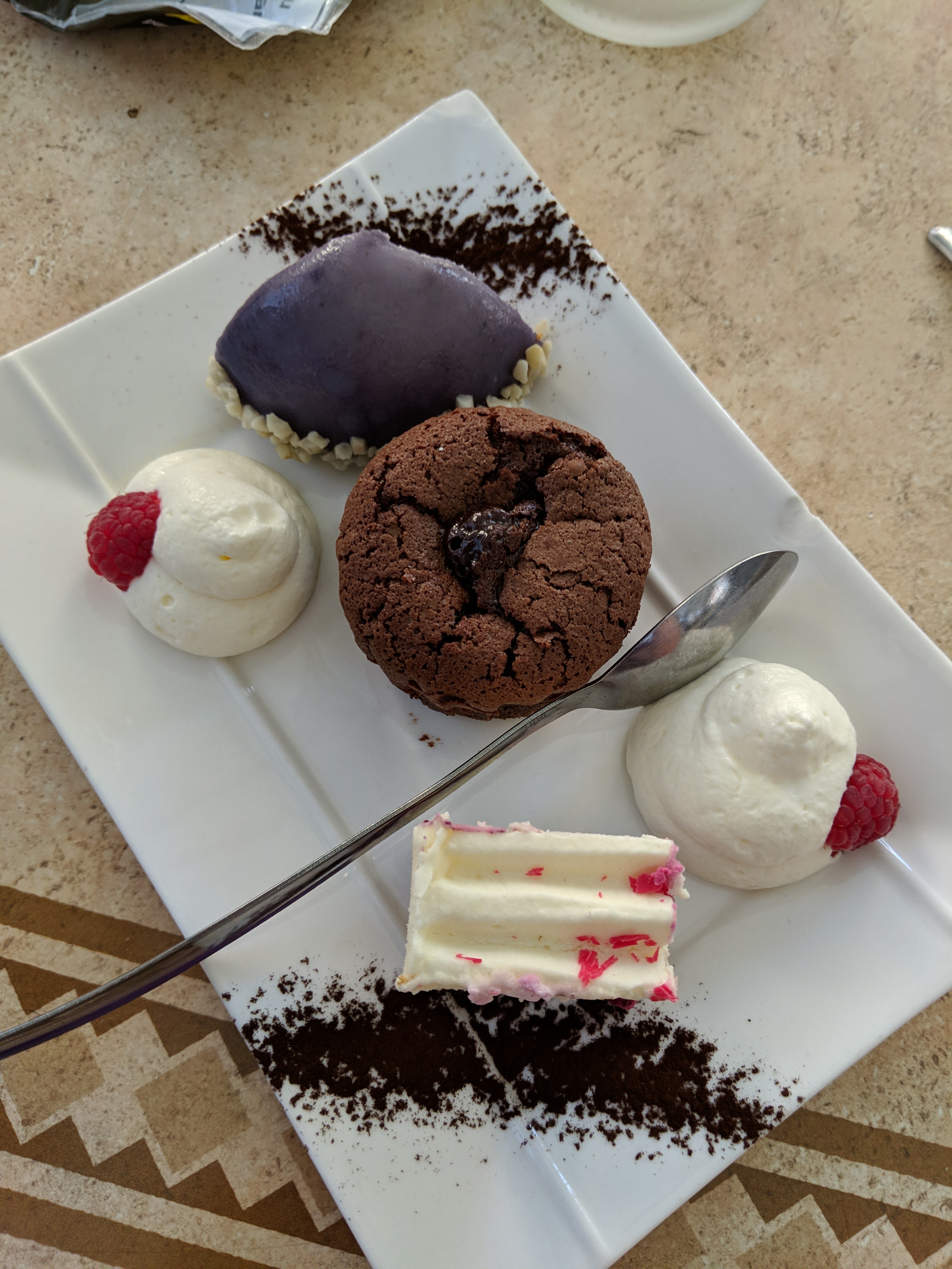 Repas plus que copieux et nous avons très bien mangé. Desserts très bien présentés. Un peu trop d'attente entre les plats. Prix raisonnables