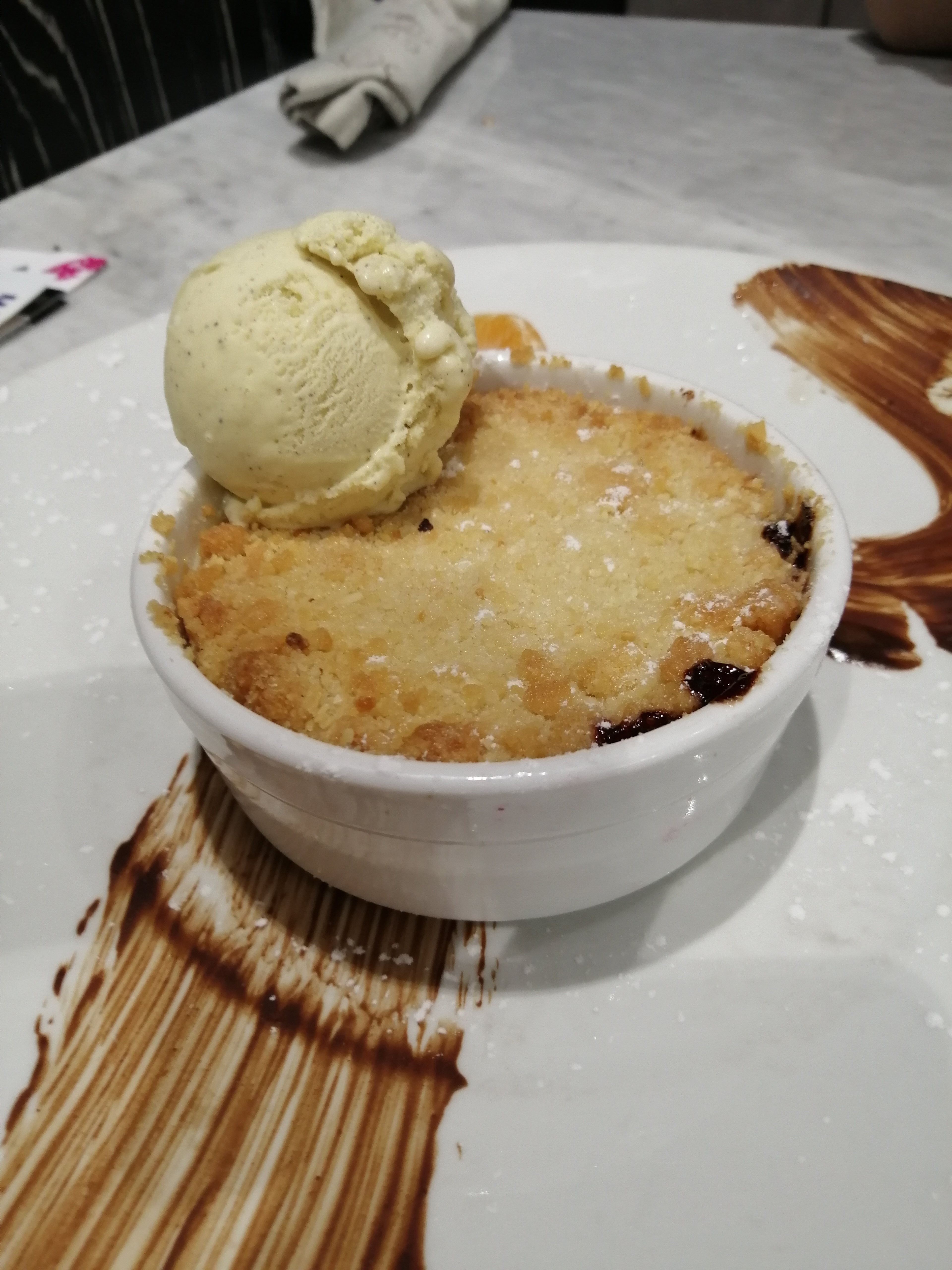 Cuisine pas mauvaise, mais service plutôt déplorable : nous étions une table de 5, deux personnes on été servies en premier et nous avons dû attendre 10minutes avant que les trois autres soient servies. Les serveurs étaient débordés, nous n’avons jamais eu le même serveur, nous avons dû attendre 30minutes et avons fini par réclamer pour commander les desserts. Au moment de passer commande, la serveuse s’est postée derrière l’ordinateur du bar et nous a demandé ce qu’on souhaitait en dessert en criant à travers le restaurant …. Nous avons dû faire de même pour lui répondre…. Plutôt gênant et pas pro.