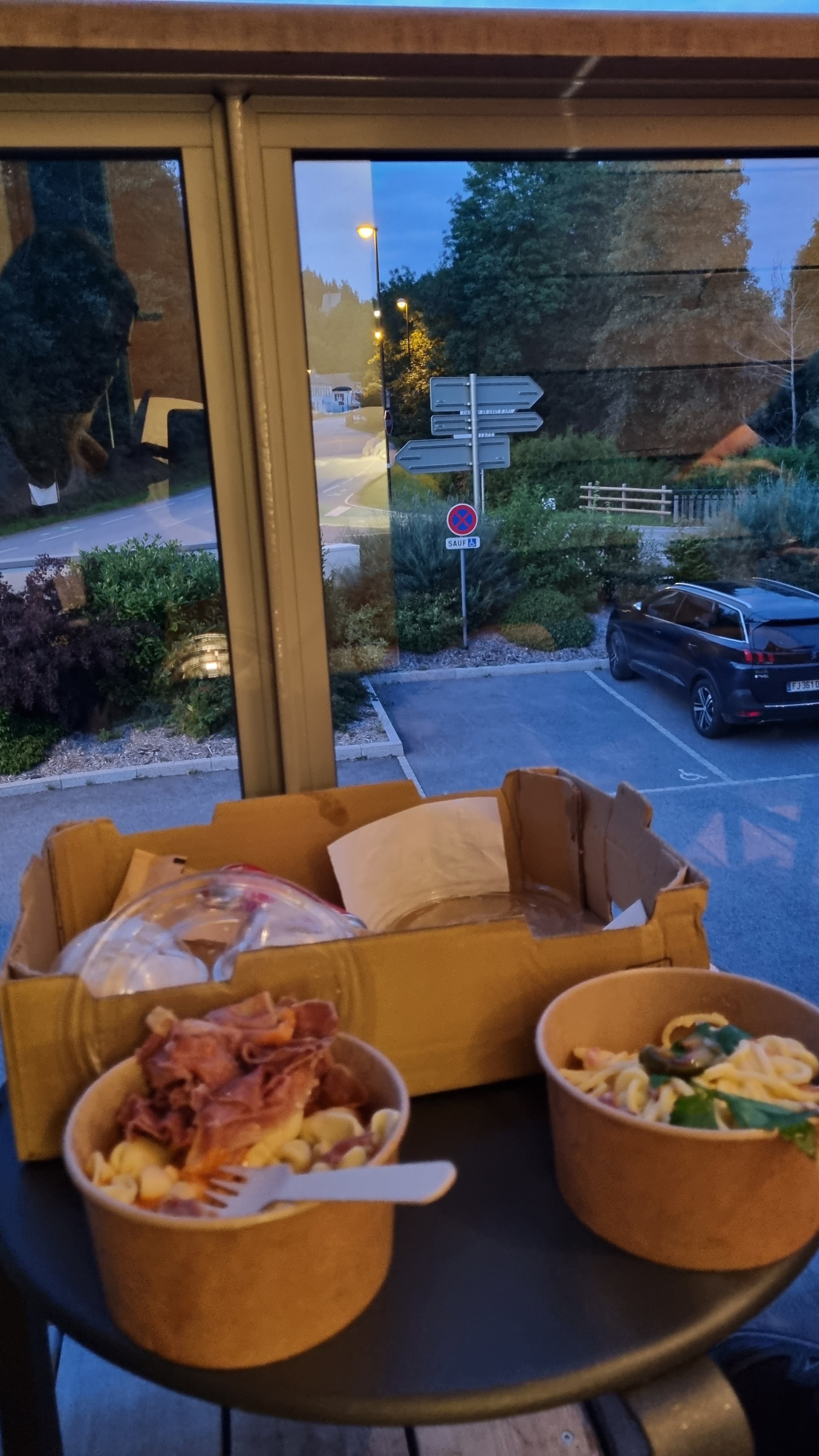 Nous avons commandés sur le site dédié a cet effet, 2 pizzas à emporter et 2 tiramisus. Nous avons souhaitez payer sur place. Le site nous annonce un délai pour les récupérer de 40min, ce délai nous a convenu. Arrivés sur place 40min plus tard les pizzas n étaient pas prêtes mais le pizzaiolo les a préparés de suite. Nous avons souhaitez les manger au bord du lac et malheureusement elles n étaient pas prédécoupées, heureusement nous avons tjs un couteau suisse sur nous. Nous n avons pas non plus eu de serviettes ( je peux comprendre que toutes les personnes qui viennent chercher n en ont pas besoin mais la personne qui nous a servi aurait pu nous demander si nous en voulions, ce n est pas grave c est juste une suggestion). Quand aux pizzas, cette adresse nous a été conseillée par nos hôtes et je dois dire que,nous sommes des adeptes des pizzas et malheureusement elle n ont pas été à la hauteur. Pâtes et garnitures bonnes mais pas très généreuses, on a pris des suppléments à 1€50 pièce et je dois dire que pour ma pizza ça valait assez le coup par contre pour celle de mon mari c était franchement abusé, autant ne rien mettre que mettre 2 rondelles d oignons. Je trouve cela exorbitant comme tarif, surtout qu'à la base leurs pizzas ne sont pas bon marché au vu de la quantité d ingrédients mis dessus. Le goût était là mais ce n était pas la meilleure pizza que j ai mangé et c est dommage car on nous les avait tellement bien vendus. Pour un dîner vite fait du dimanche soir ça passait mais sans plus. Les tiramisus étaient bons, mais pareil, nous n avons pas eu de cuillères donc difficile de les manger à l extérieur.
