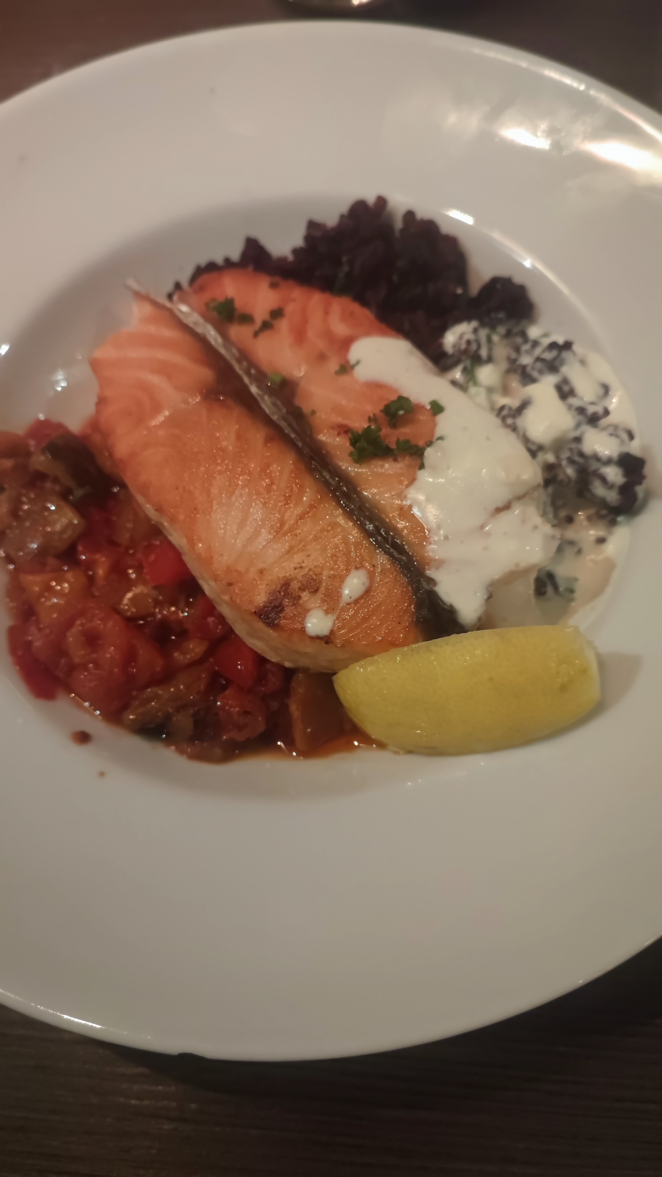 La nourriture est très bonne, par contre la music est monotone, très médiocre pour danser, assez suffisante pour l’ambiance, mais pas pour soirée de danse. Et une mauvaise attention de la part du personnel : il y avait une fenêtre derrière nous qui était cassée, nous avons demandé plusieurs fois de trouver le moyen de la fermer car ça soufflait super fort et vu que c’était en octobre et dehors il y avait beaucoup de vent, c’est très gênant pour plusieurs personnes de notre groupe. Nos demandes sont restées sans suite, l’histoire s’est terminée par barricade de sacs et blousons créé par nous-mêmes en taille de toute la fenêtre (elle était cassée et se fermait pas bien).