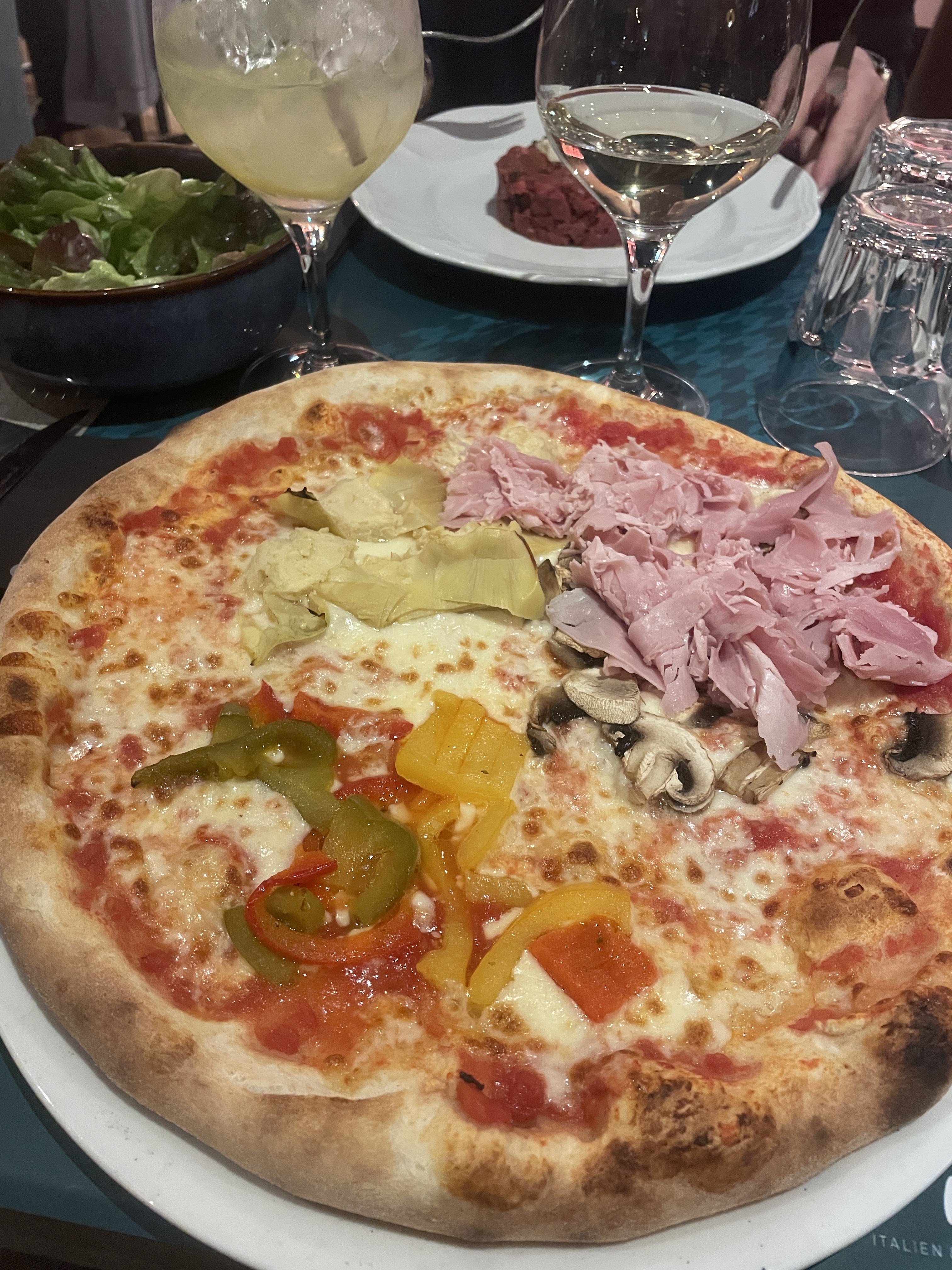 3 étoiles pour le services et le cadre sympathique. Pour le reste franchement ce n'était vraiment pas terrible ! Une pizza archi salé (pas mangeable), tout nos plats étaient fades et manquaient d'assaisonnements. C'est dommage car l'Italie en cuisine c'est un voyage fabuleux. La musique pour un samedi soir... Du Patrick bruel et j'en passe. Au moment du règlement plus de 200e sans café ni dessert pour 6 personnes et le monsieur qui encaissait n'apprécie pas trop la critique qui sincèrement était fondée. On a tout de même passé une bonne soirée.