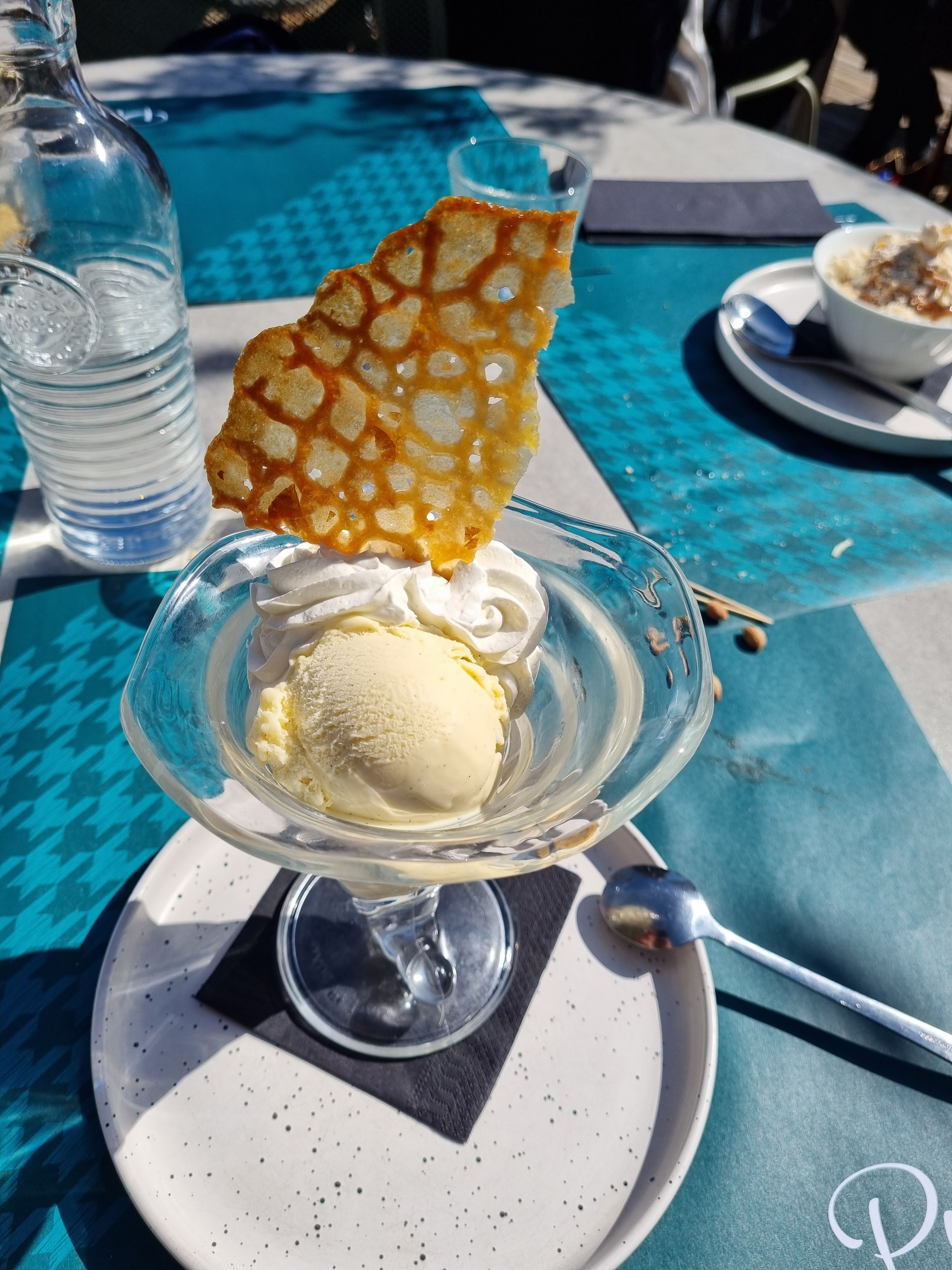 Plat de ravioles très compact trés probablement du midi et réchauffé c'est vraiment décevant !!!! Et coupe de glace à 9€ beaucoup trop cher pour 2 ou 3 boules un coulis et chantilly pas faite maison. Déçue par rapport aux recommandations. Par contre un très bon service