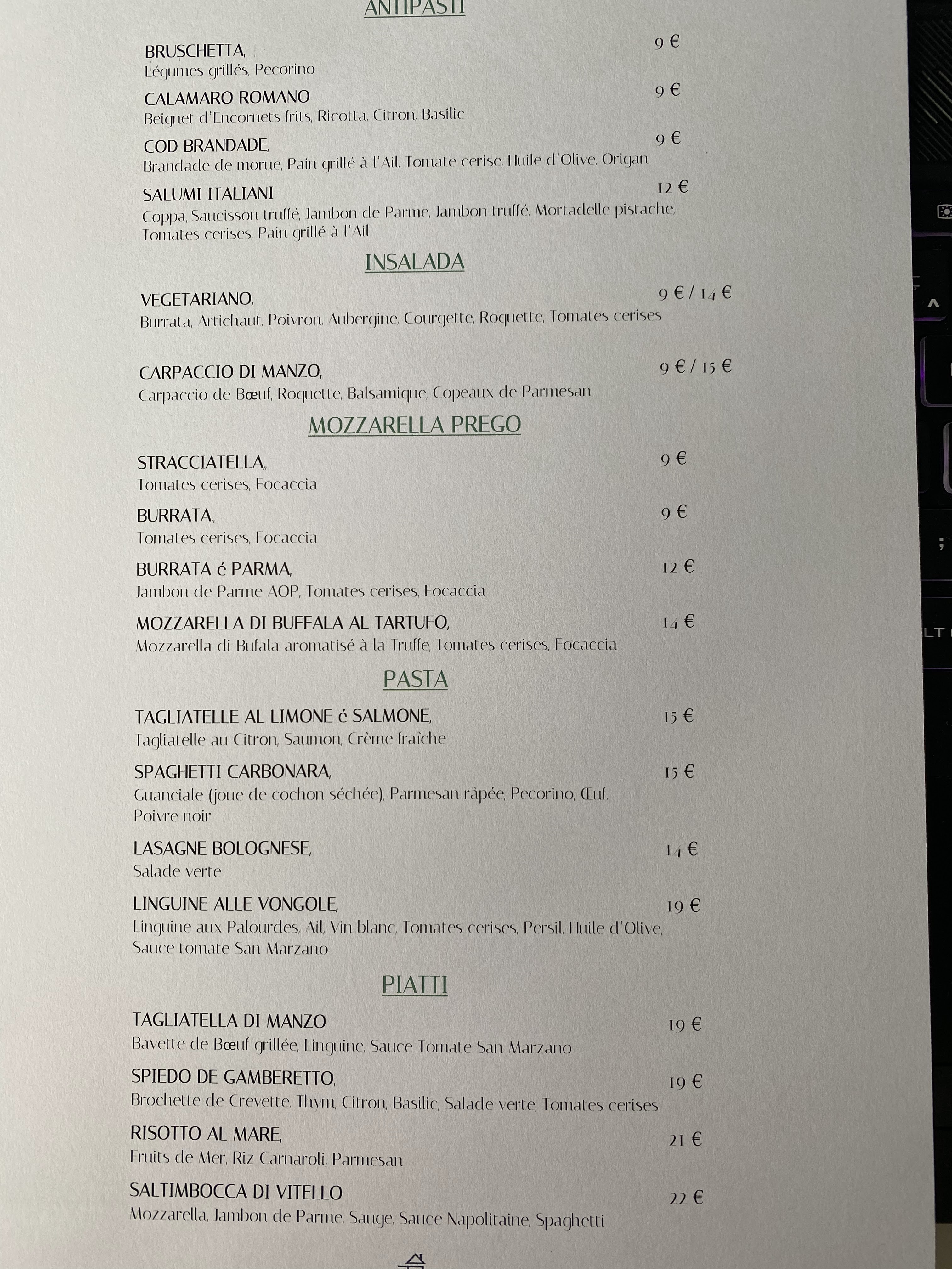 Bonjour Merci pour cet avis et cette critique constructive… Nous allons rectifier le tir en cuisine, où malheureusement, le chef était absent ce samedi. En espérant vous accueillir à nouveau, pour une meilleure expérience…. À bientôt au Prego..!