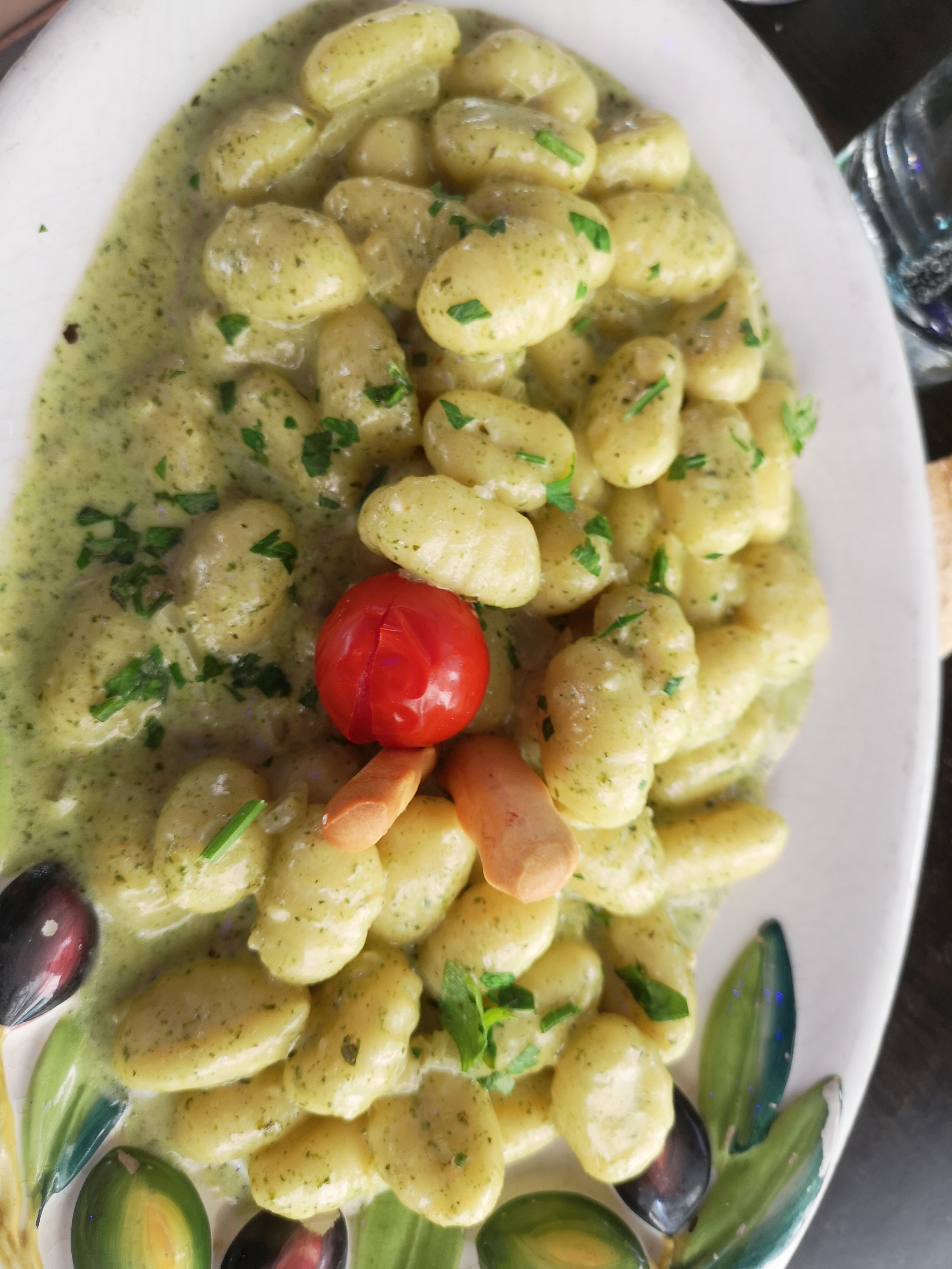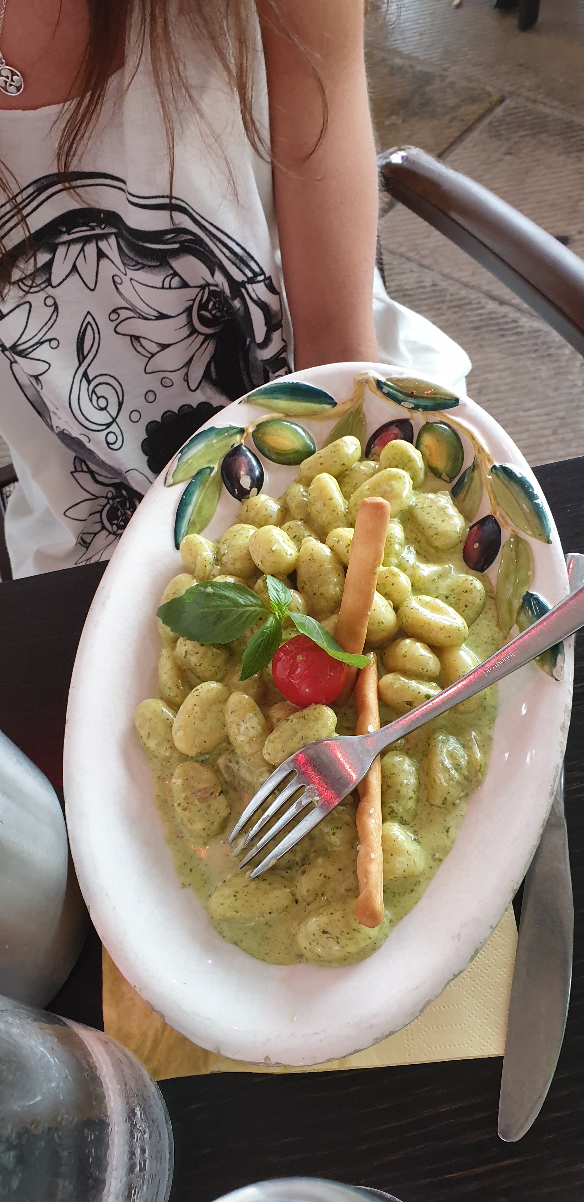 Parfaitement parfait ! Nous étions en terrasse avec un bébé de 18 mois, c’est toujours stressant de tenir son enfant dans un restaurant, mais les serveurs ont été plus que sympathique et souriant !! Le repas était excellent pourtant je n’aime pas trop le basilic mais c’était tellement bon ! Ma fille a adoré la pizza et les pâtes, mon mari également, c’était vraiment vraiment bon. Au top !