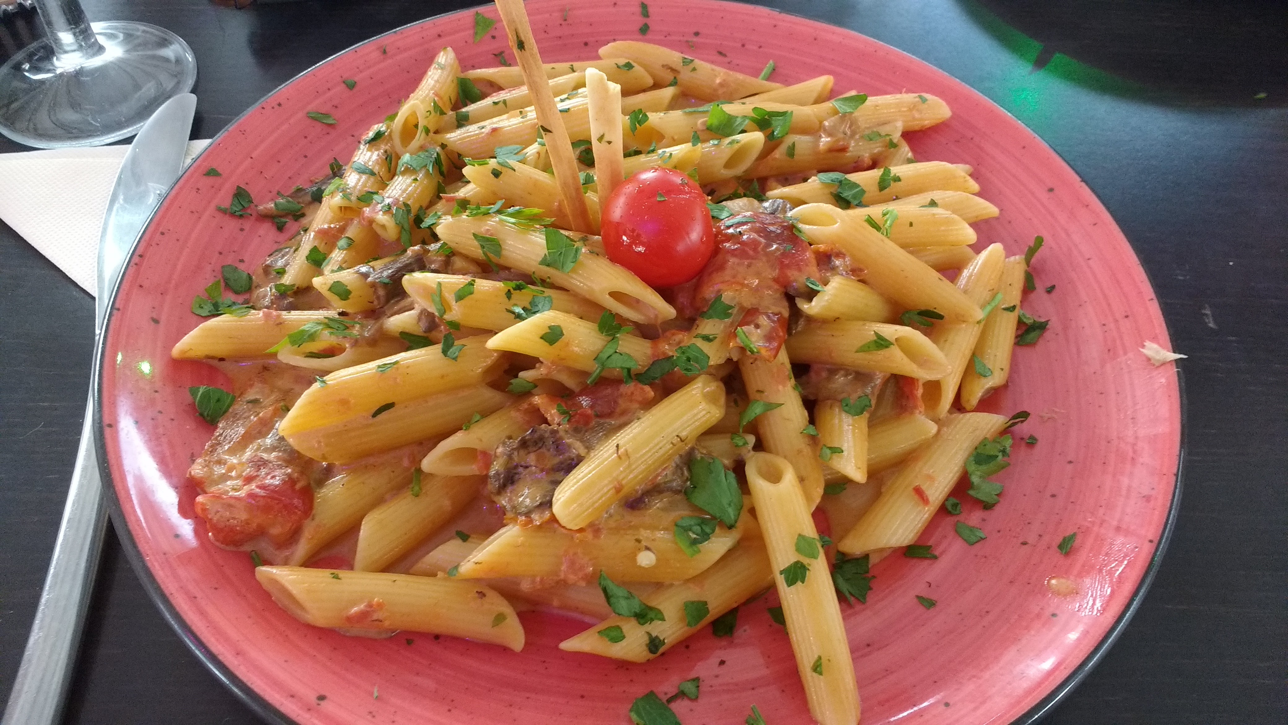 Plat simple mais excellent ! J’ai des pennes a l’arrabiata et je me suis régalé…épicé à souhait.