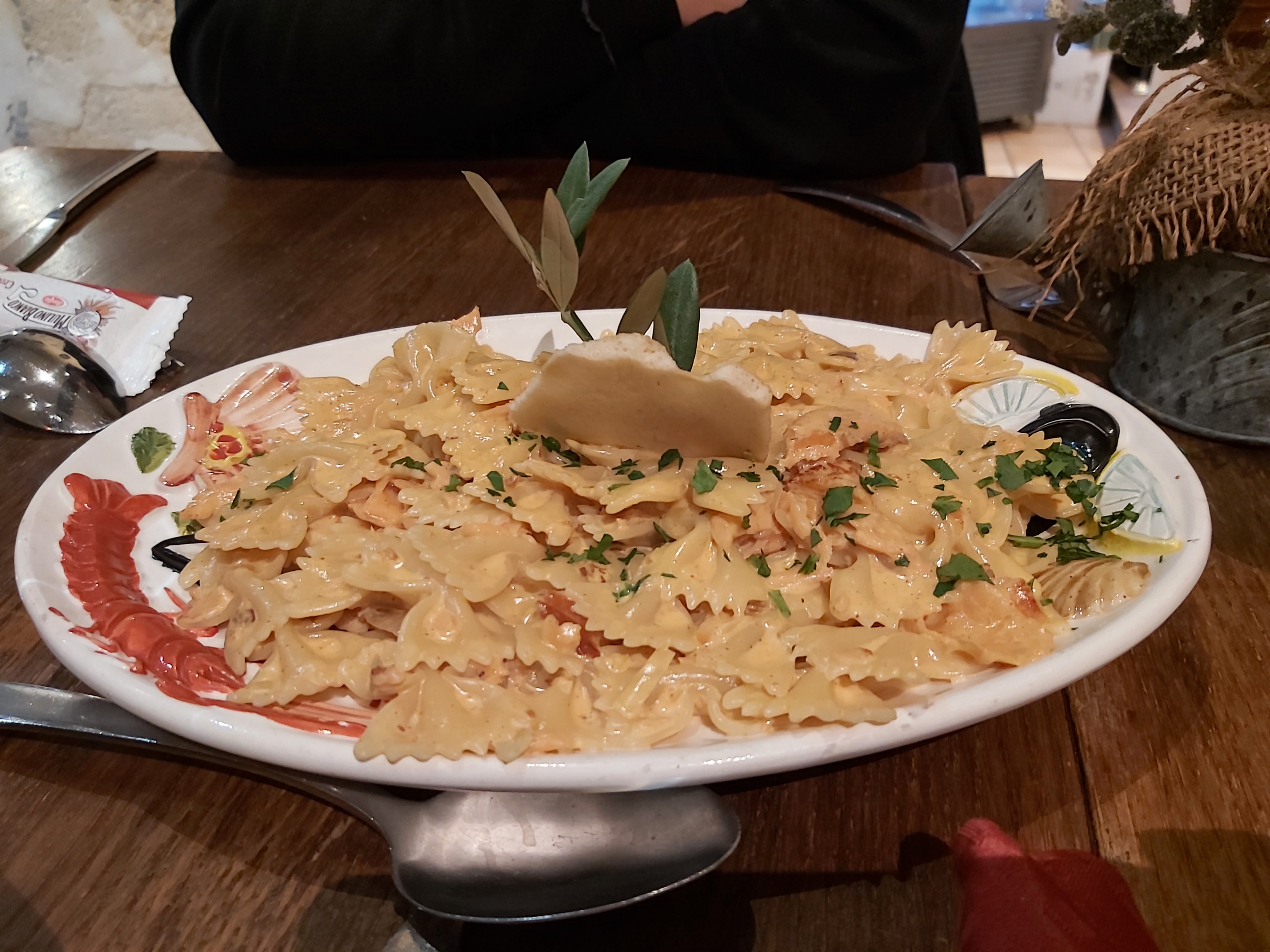 Des prix au dessus de la moyenne pour les pates, il faudra compter un minimum de 13€ pour ces dernieres. Le service est correct, malgré le non port du masque par plusieurs serveurs. Pour mon plat, des pâtes au curry et au magret (16€), je n'ai pas pût finir mon assiette, non pas parce que la quantité était grande mais bien car la carte ne disait pas ce qu'il y avait reelement dans l'assiette. Méfiez vous, ce lieu est un attrape touriste