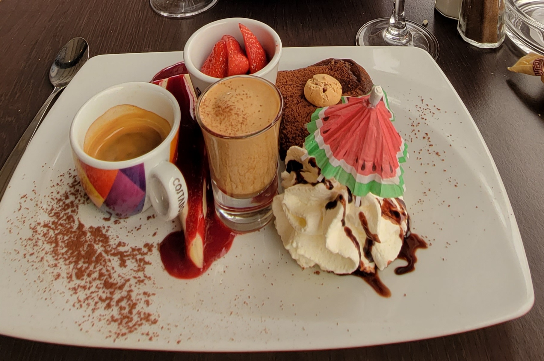 Musique trop forte Serveuse qui jette littéralement les desserts sur la table sans un mot Mais on mange bien c’est le principal