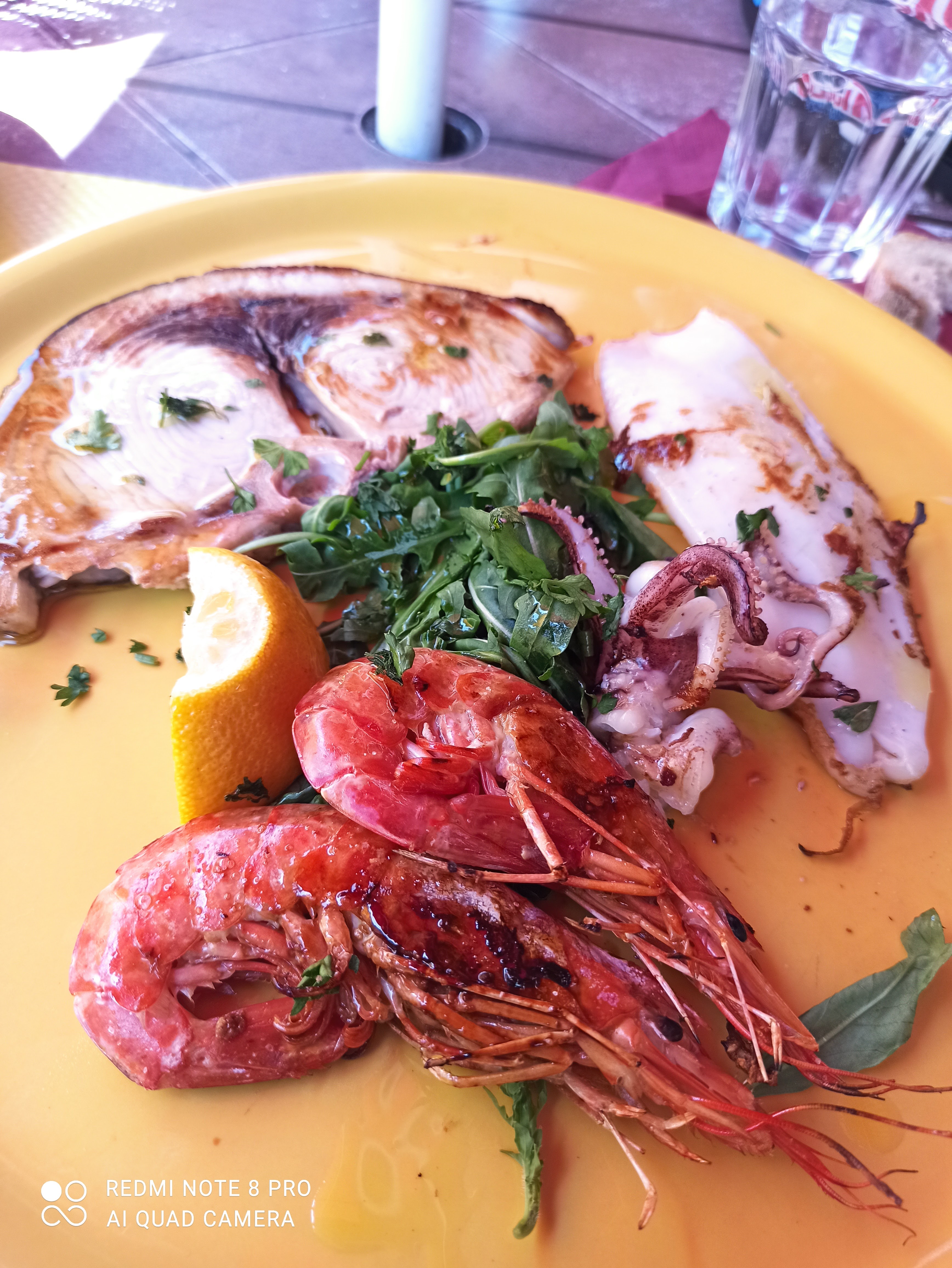 Pizza de taille impressionnante. Rassurez vous si vous ne finnissez pas on vous met le reste dans un carton à emporter...carte très variée. Assiette de poissons grillés très bien .