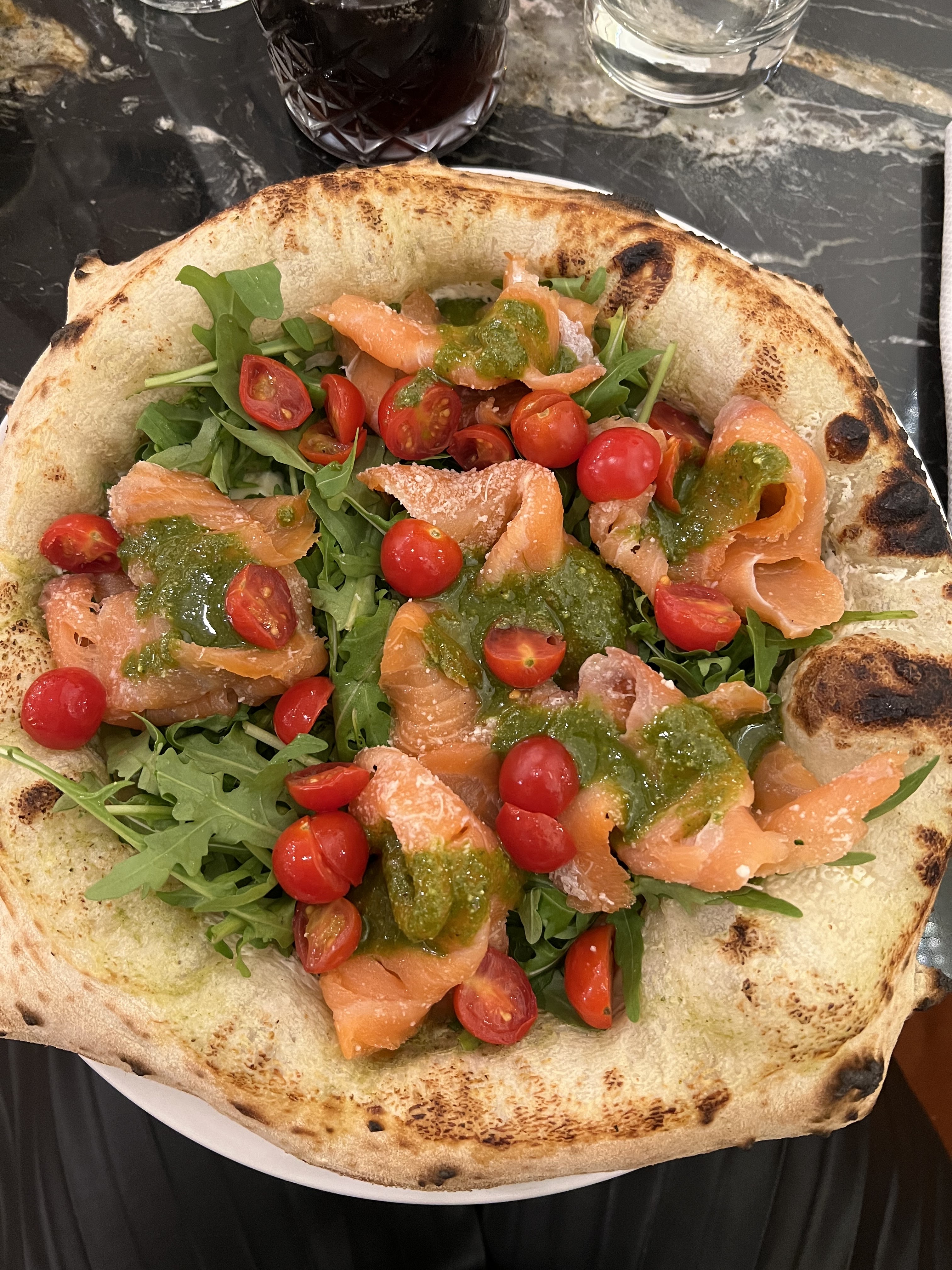 La pâte à pizza est plutôt bonne mais pas extraordinaire. Le cocktail était bon mais hors de prix. Et malheureusement, le service est mauvais : impoli, pousse à la consommation et vend un plat comme beau plutôt que bon...si vous venez pour bien manger, je vous conseille de passer votre chemin. Pour des photos Instagram pourquoi pas