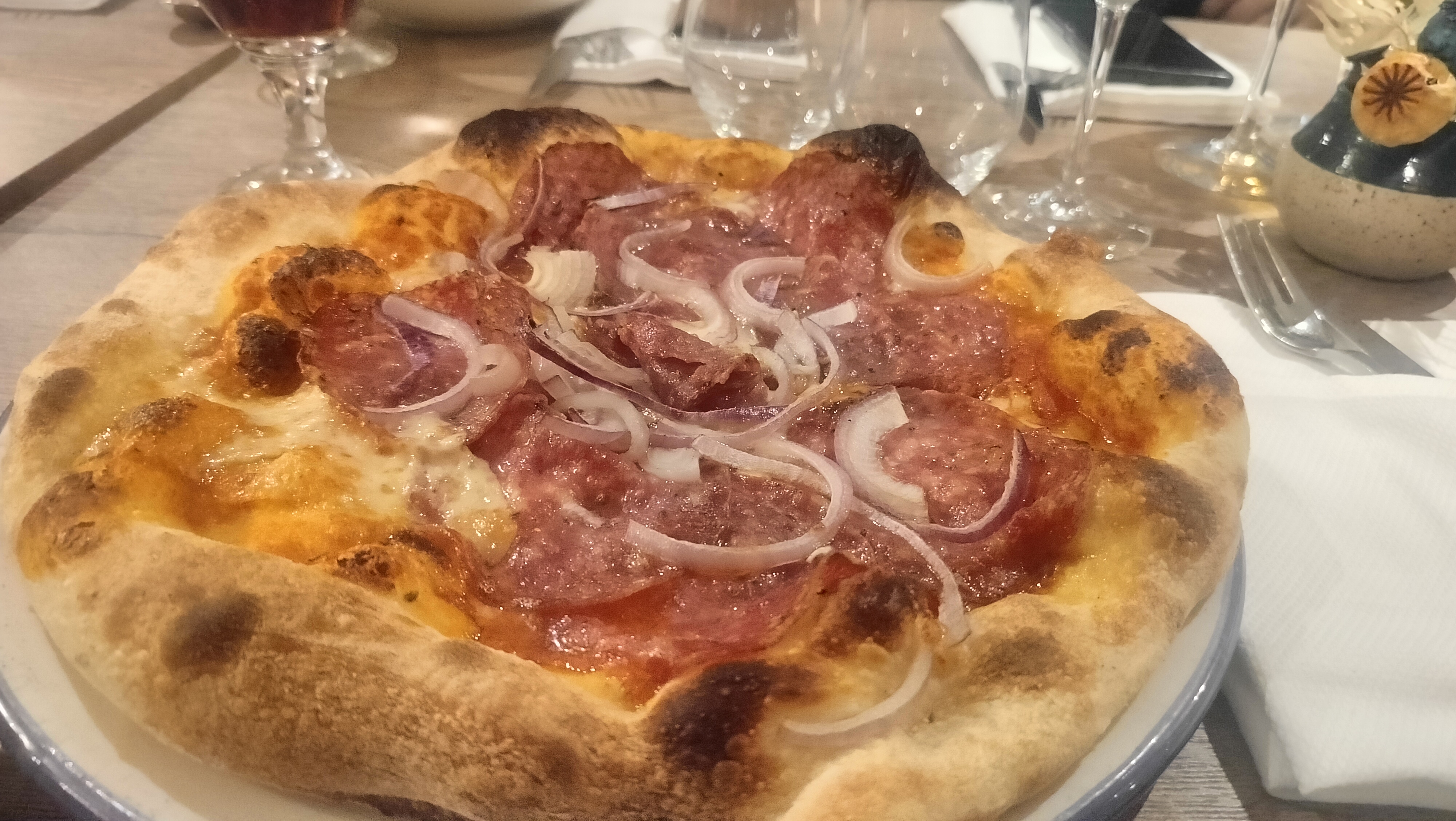 Je suis venu à l'occasion d'un anniversaire d'une amie. J'ai pris en plat une pizza FINOCCHIONA. Première fois que j'ai testé ce restaurant, je trouve que la pizza était bonne. L'association entre le salami et l'oignon donne un goût particulier que je n'avais jamais goûté. Le personnel était très sympathique. Je recommande