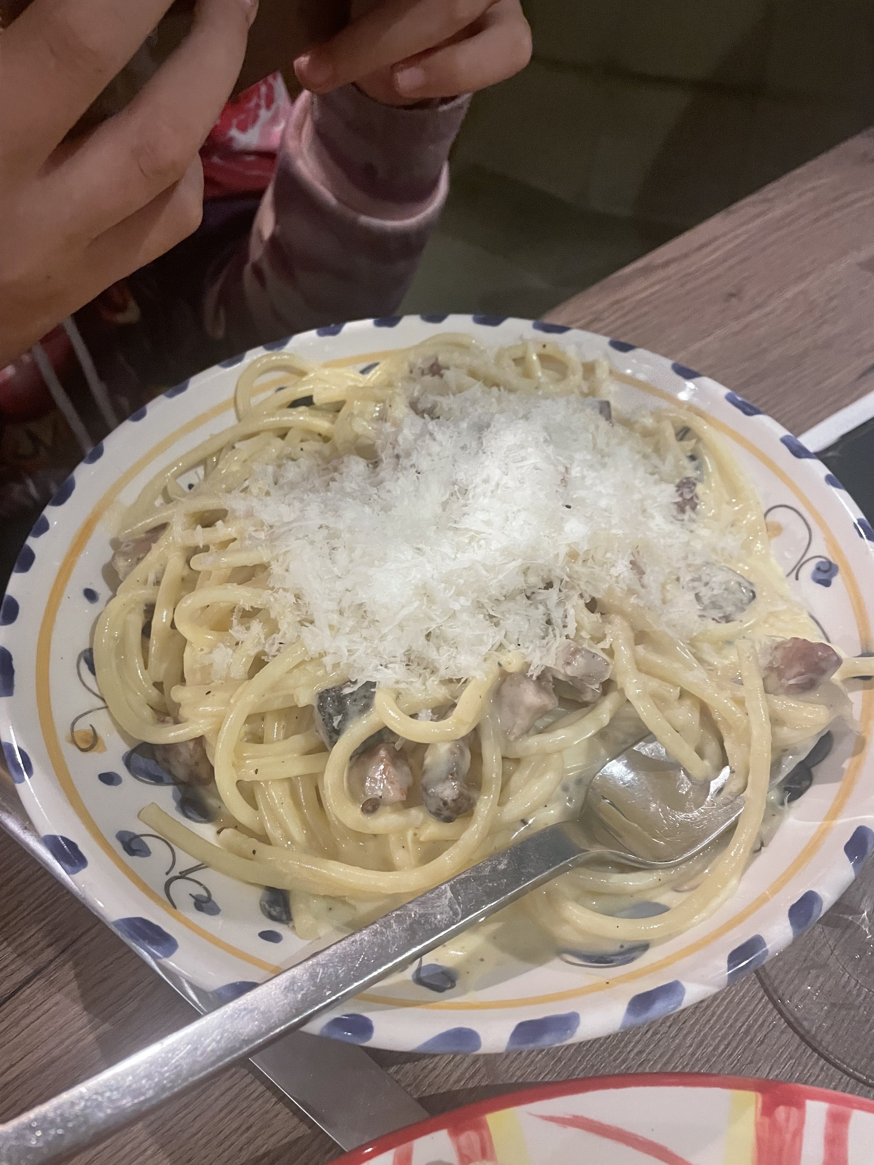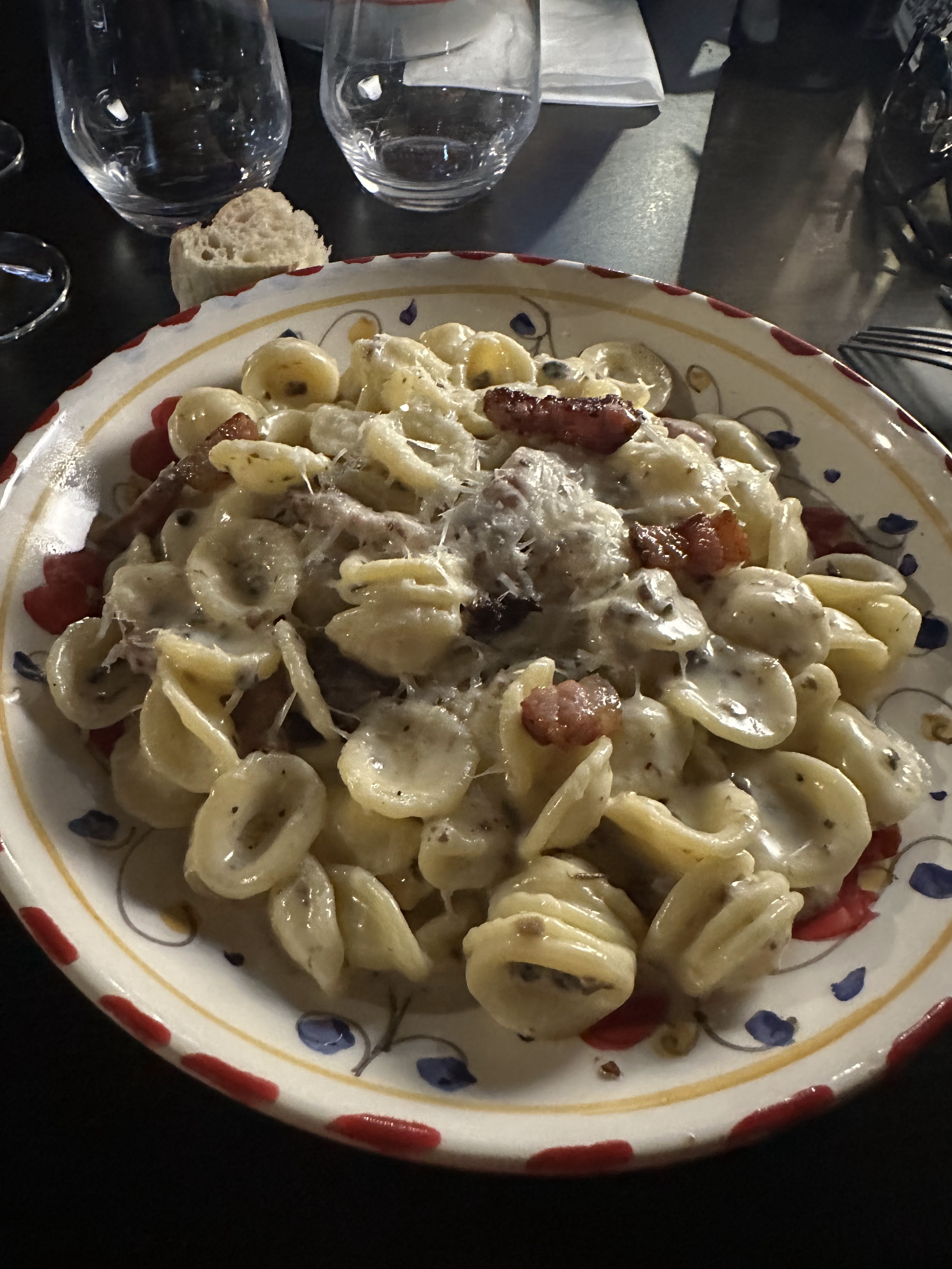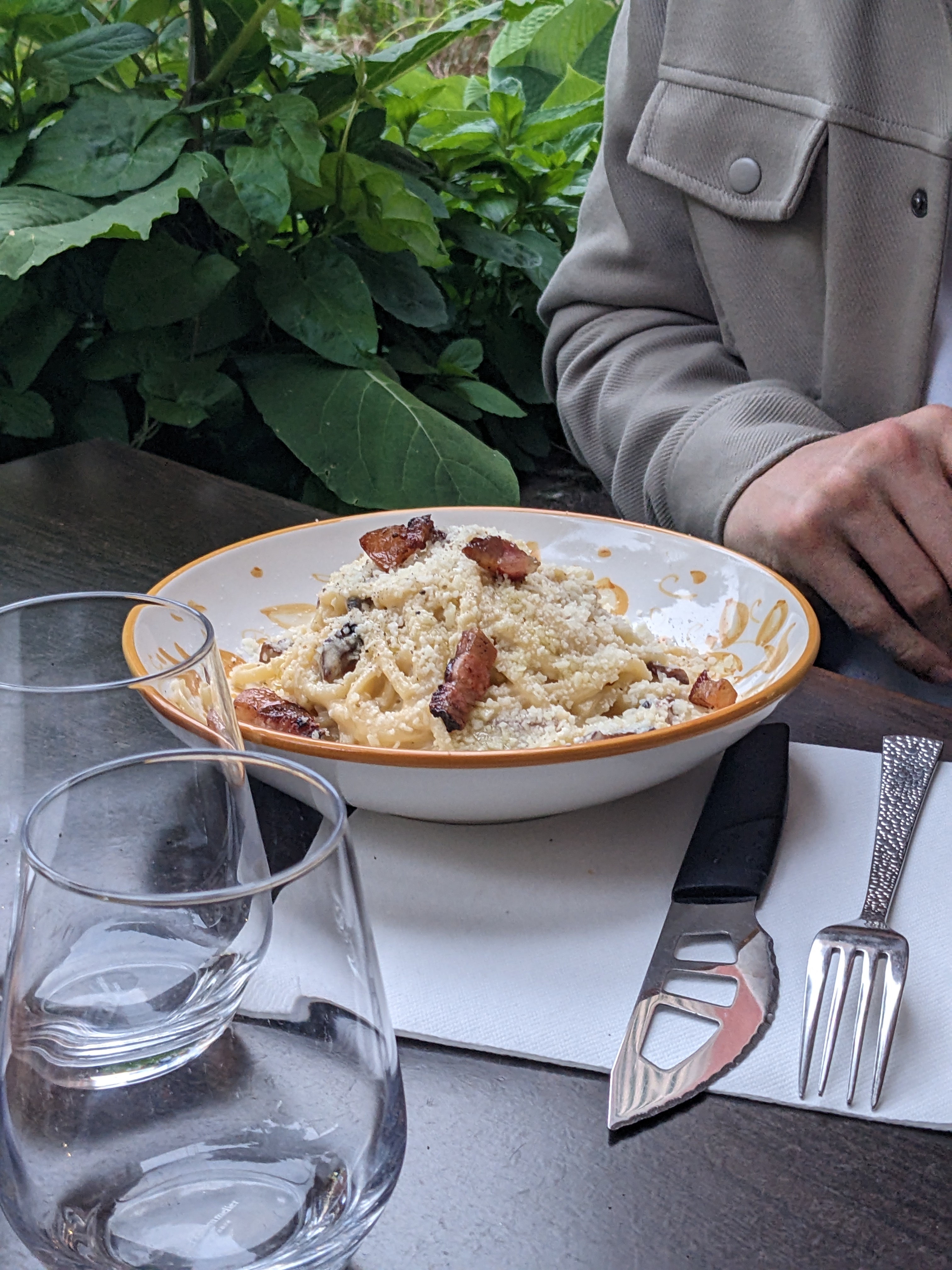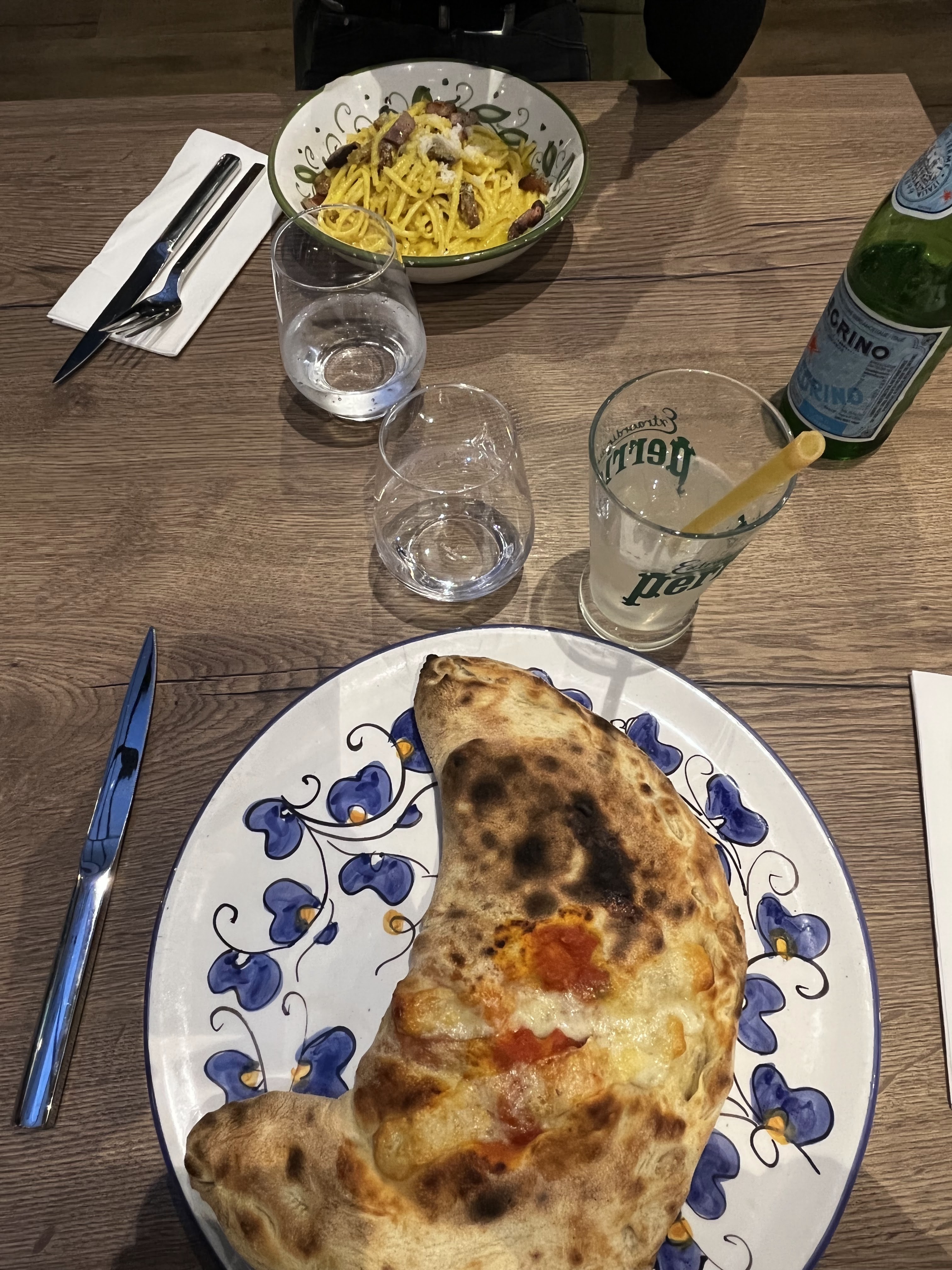 On a testé les vrais carbonara. C'était bon mais dommage trop salé. Pour le prix 15€ le plat je trouve que la quantité est trop peux. Le Bellini maison est bon mais reste quand même cher pour la quantité du vers soit 7€.
