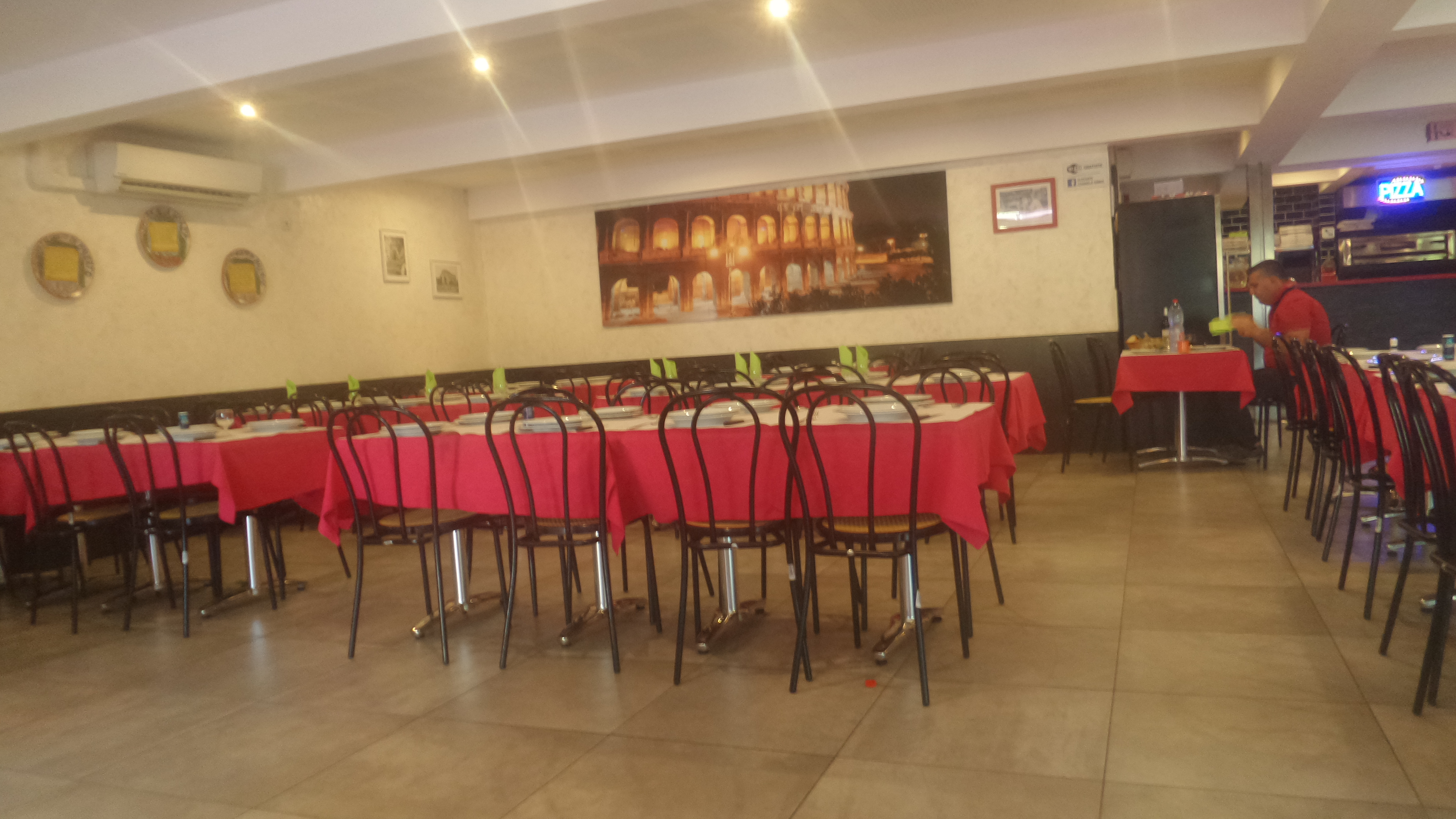 Grand local adjacent à l'autoroute. Bonne cuisine italienne avec des produits siciliens. Personnel de service rapide.