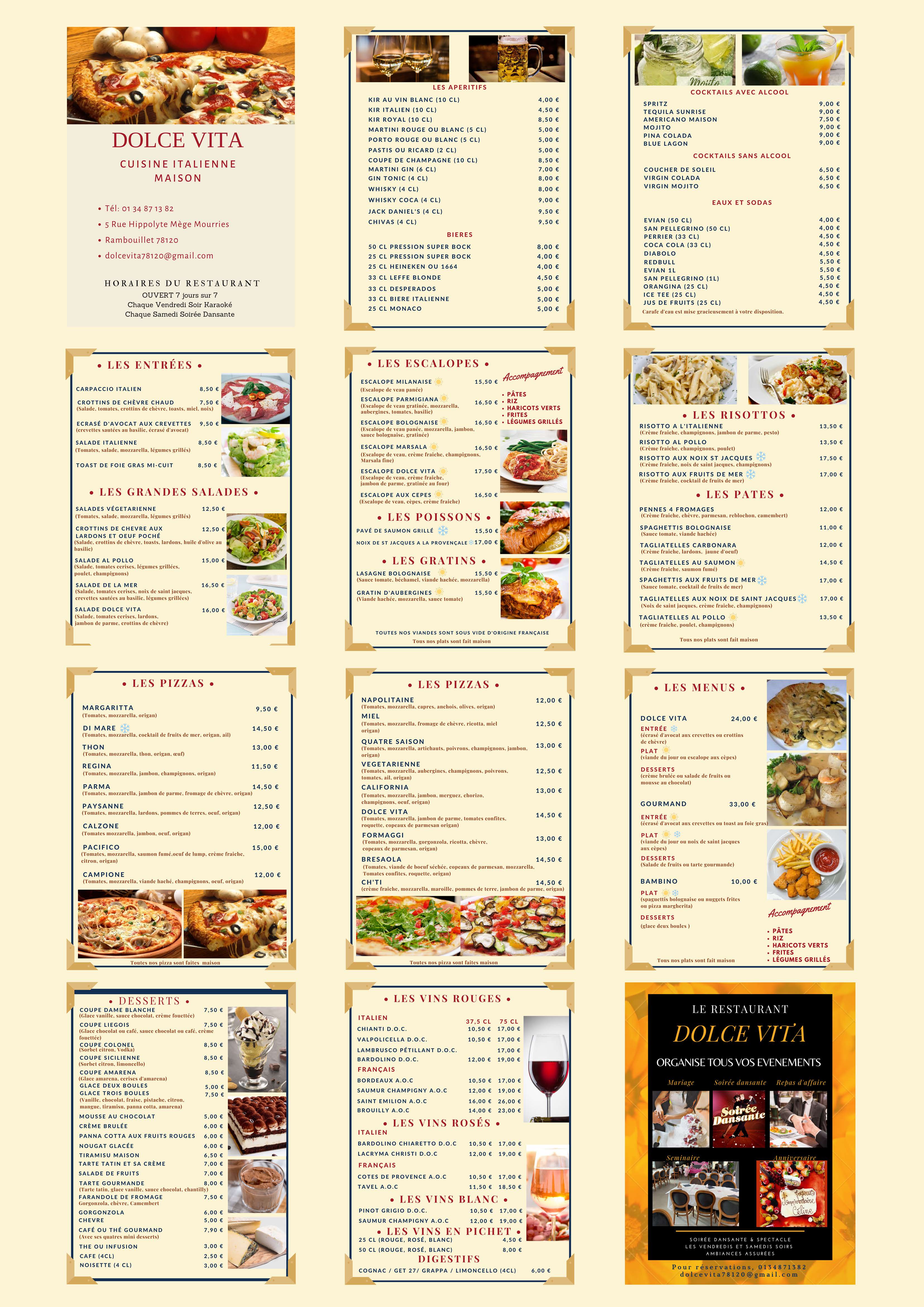 Merci, Patrick, de donner 5 étoiles à l'ambiance et à la carte de DOLCE VITA. Il va sans dire que le Filets de dorade aux Saint-Jacques vous attend impatiemment. Votre commentaire a été, bien sûr, transmis aux équipes de salle et cuisine. A très vite, donc. Mille mercis! Equipe DOLCE VITA