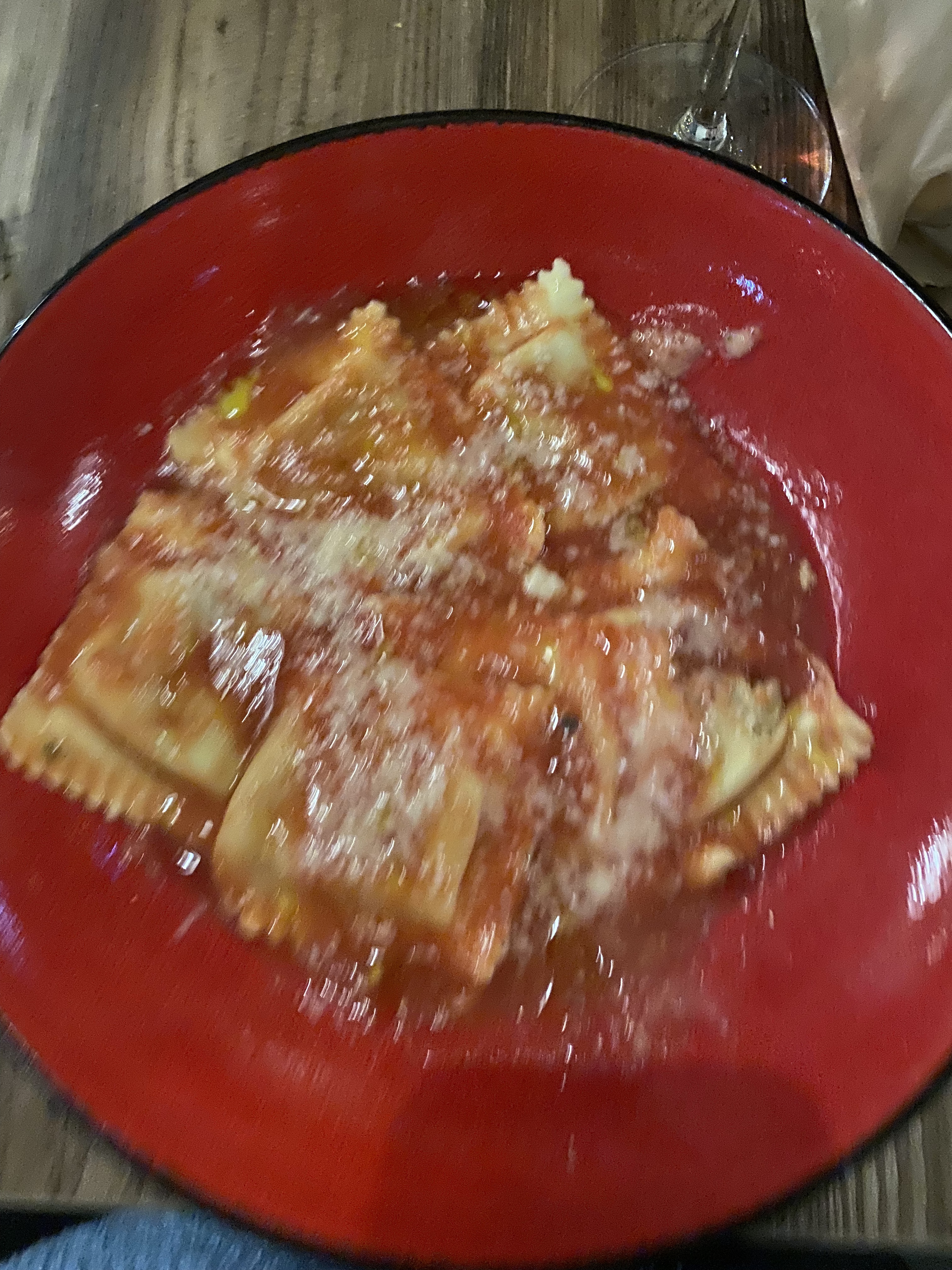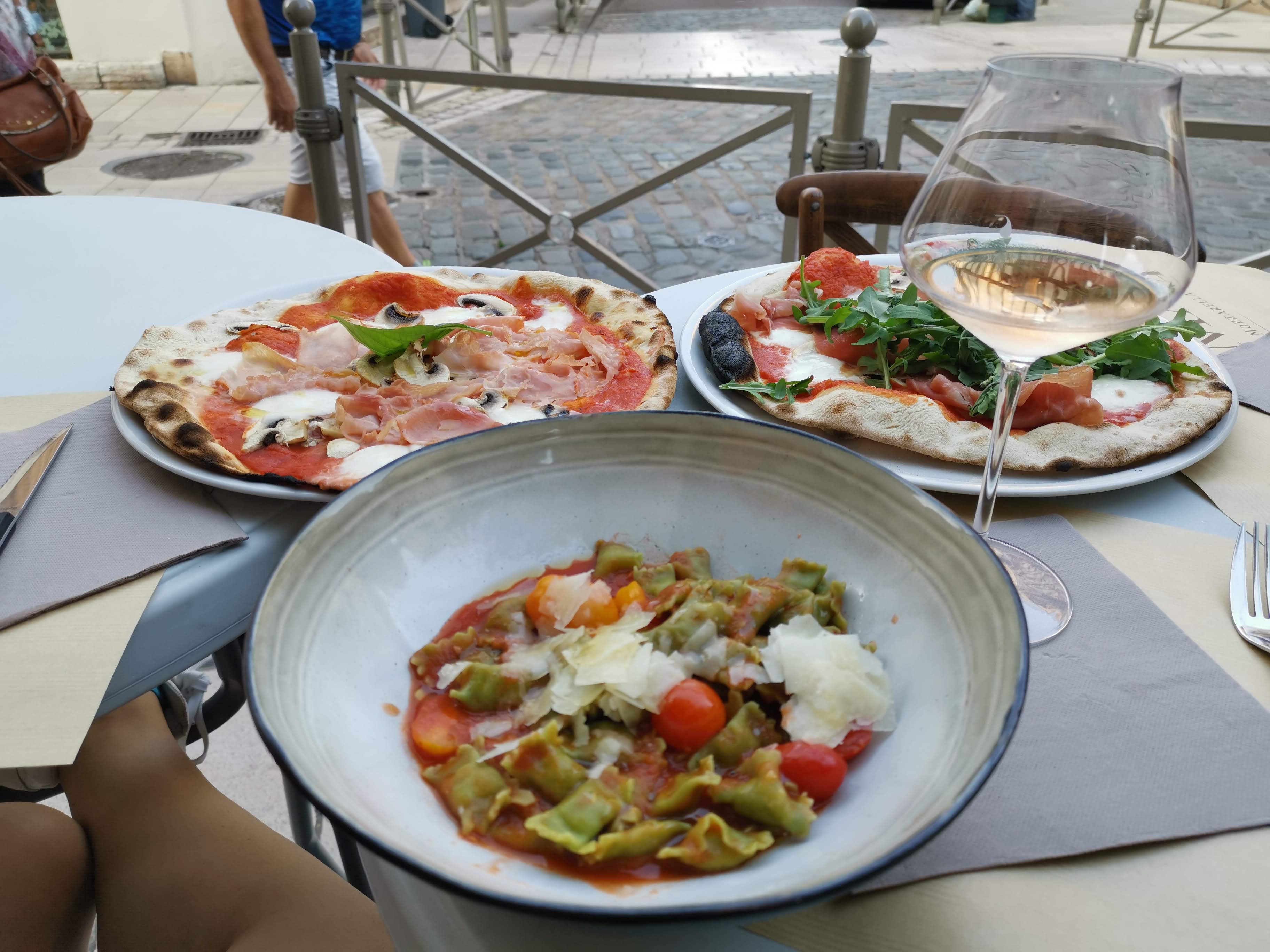 Nous nous sommes régalées : ravioli bœuf et pizza végétarienne avec une sauce tomate excellente. Haute côte de nuits pour accompagner ce délicieux repas et hop nos papilles sont aux anges.. vivement conseillé !