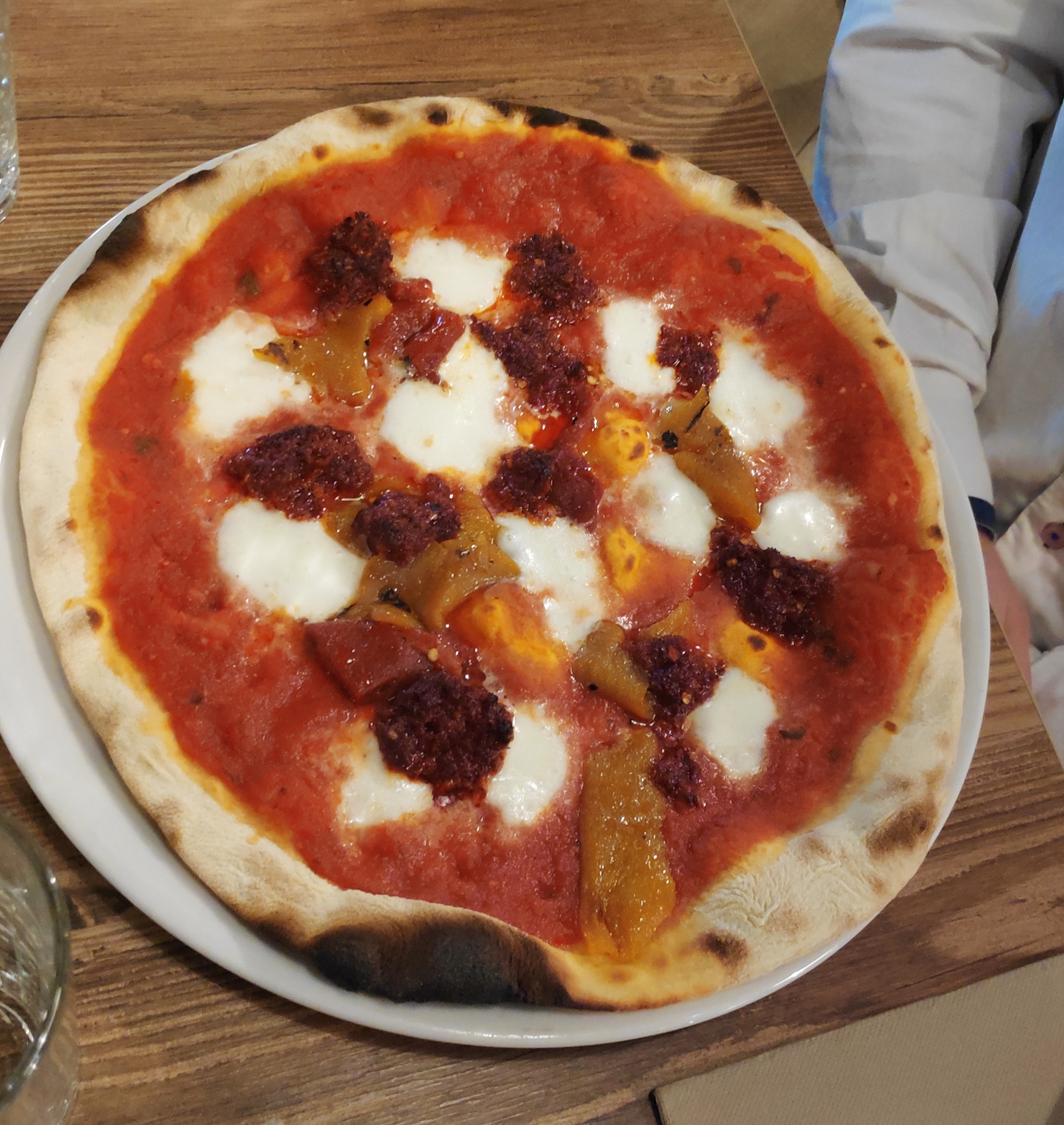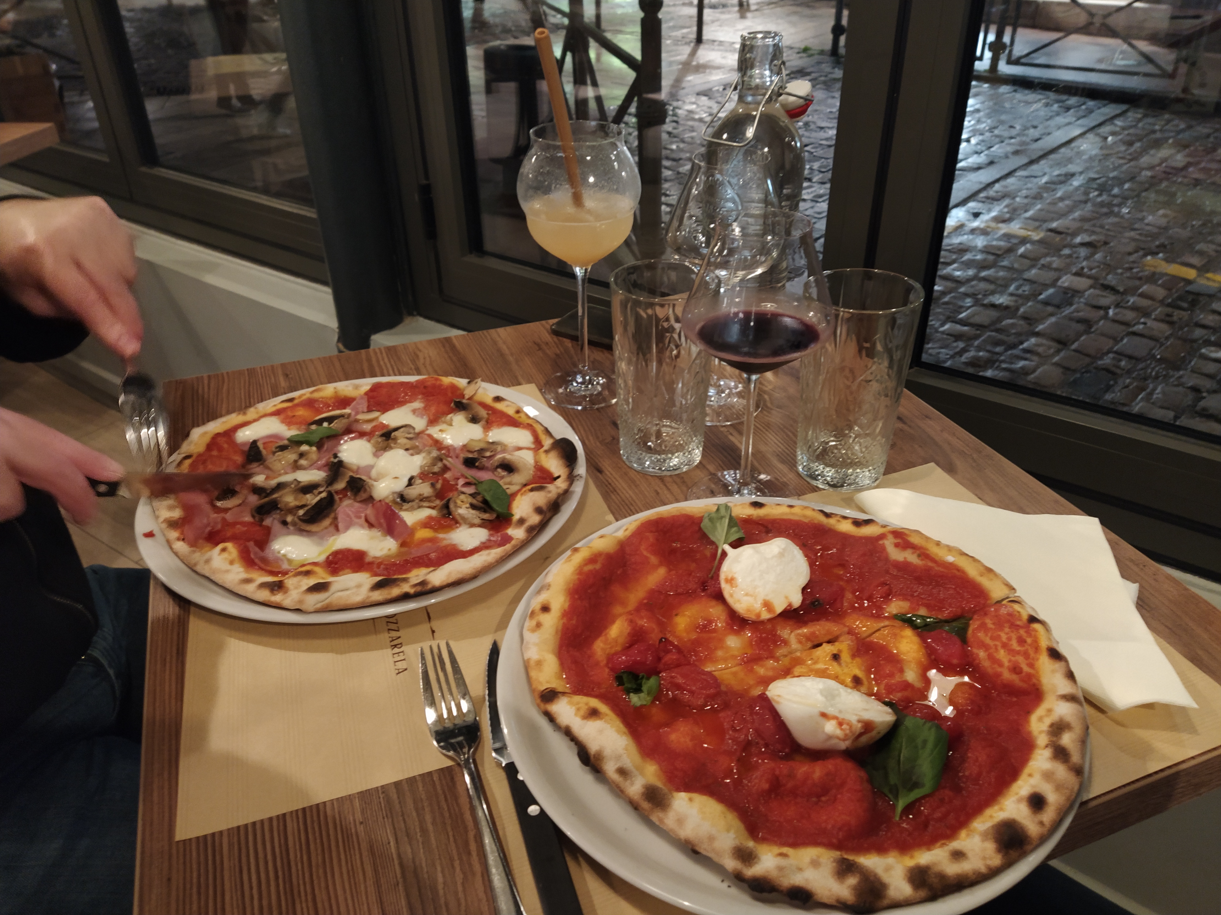 Nous avons apprécié la rapidité du service sachant que nous étions attendus dans la soirée. Pouvoir observer la cuisson de la pizza directement dans la salle à manger permet une proximité assez plaisante avec les cuisiniers. Au niveau de la pizza, nous avons pris une margarita, qui était excellente. Seul bémol, elle semblait assez pauvre en aliments, mais cela ne nous as pas empêché d'apprécier la nourriture.