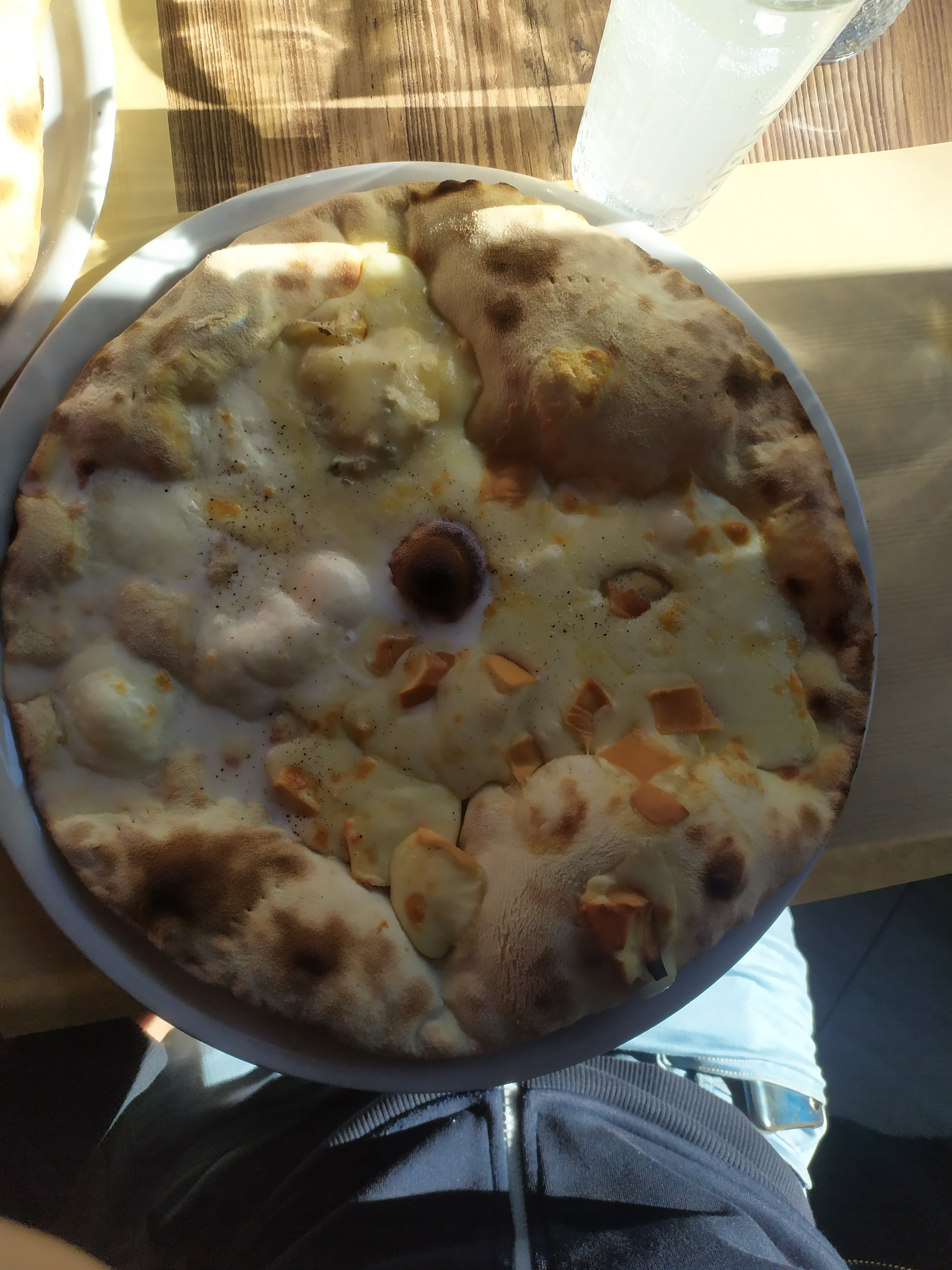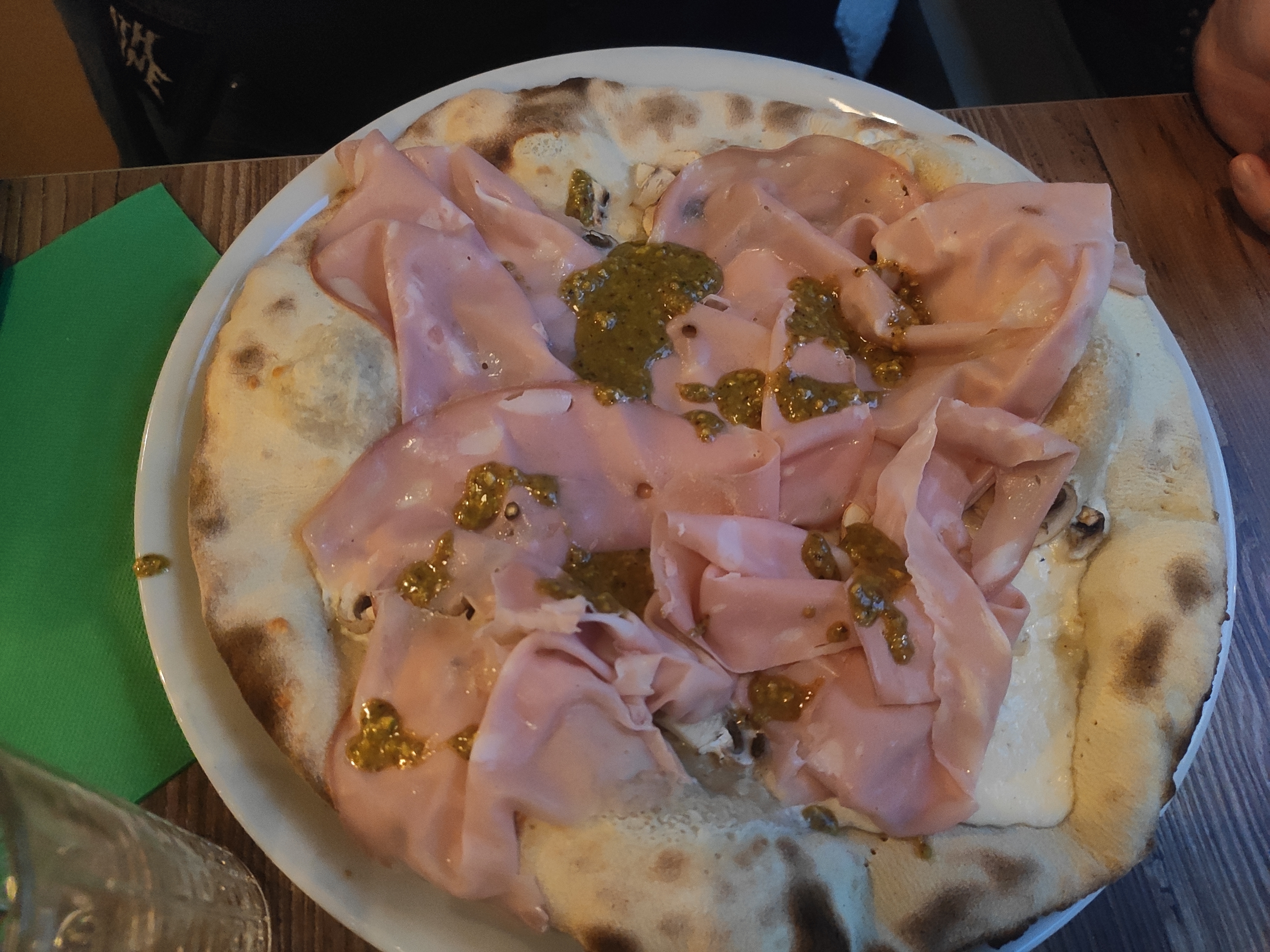 Cadre assez agréable et pizza assez bonne. ( la Parma avec champignon?). Carte papier pas agréable et sale. Pas de menu enfant.Pas de coupe glacée…. Au final, quelques points à revoir, un certain potientiel…