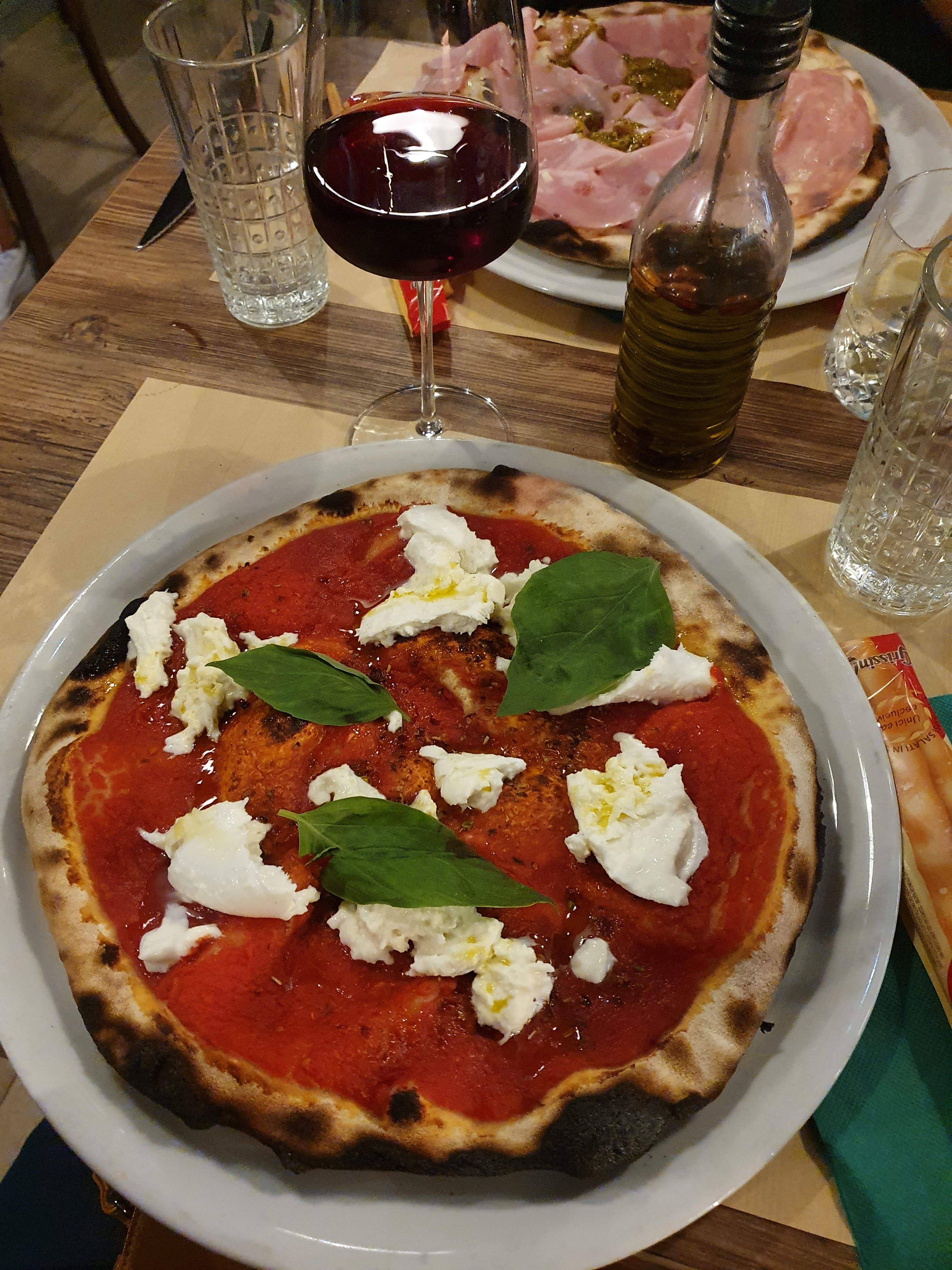 Très bon accueil et la serveuse m'a permis de goûter le vin. Je ne le connaissais pas contrairement à l'autre référence. J'ai finalement porté mon choix sur celui que je connaissais. Service rapide, pizza qui manquait un peu de garniture/burrata à mon goût et huile piquante pas très relevée.