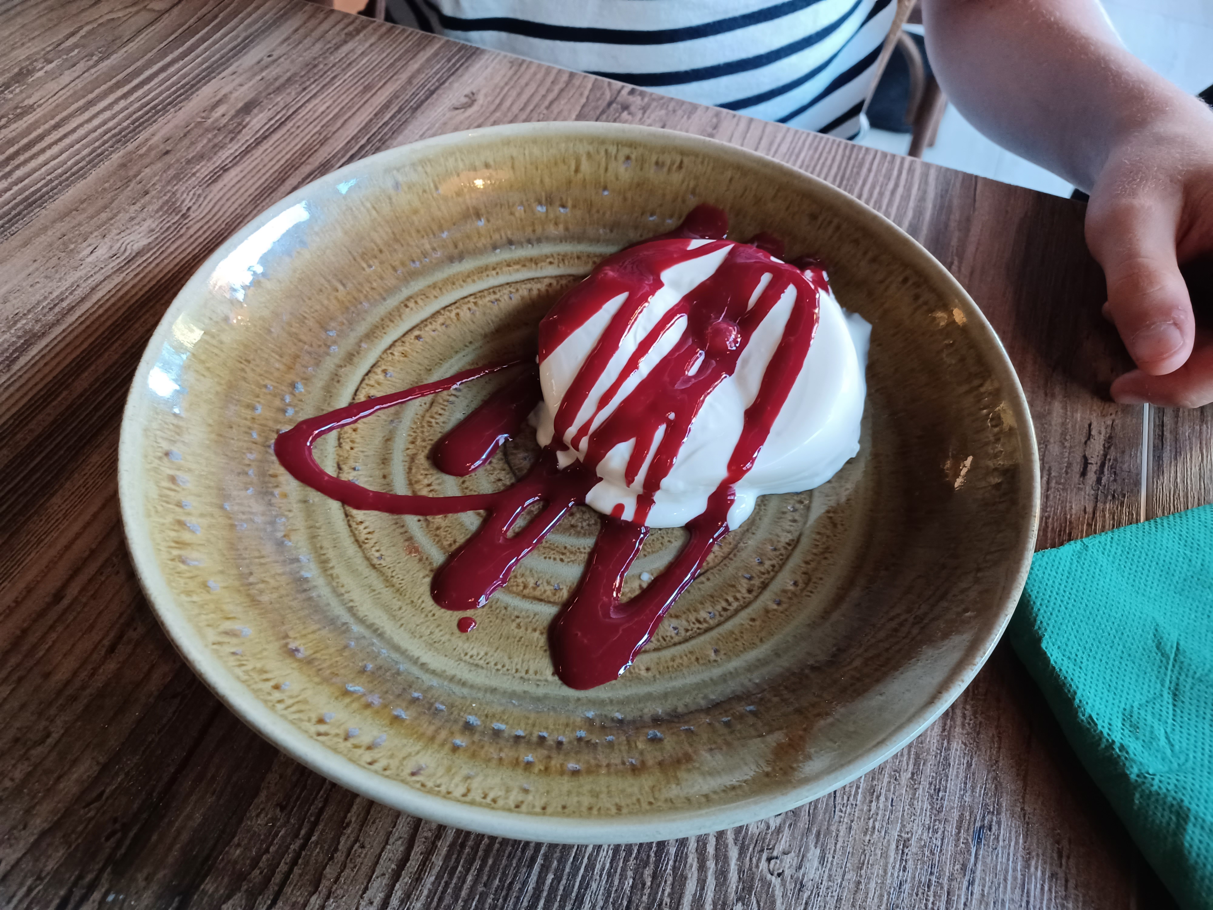 Pizza (bresaola) excellente. Et la panna cotta un vrai délice, ultra fondante.