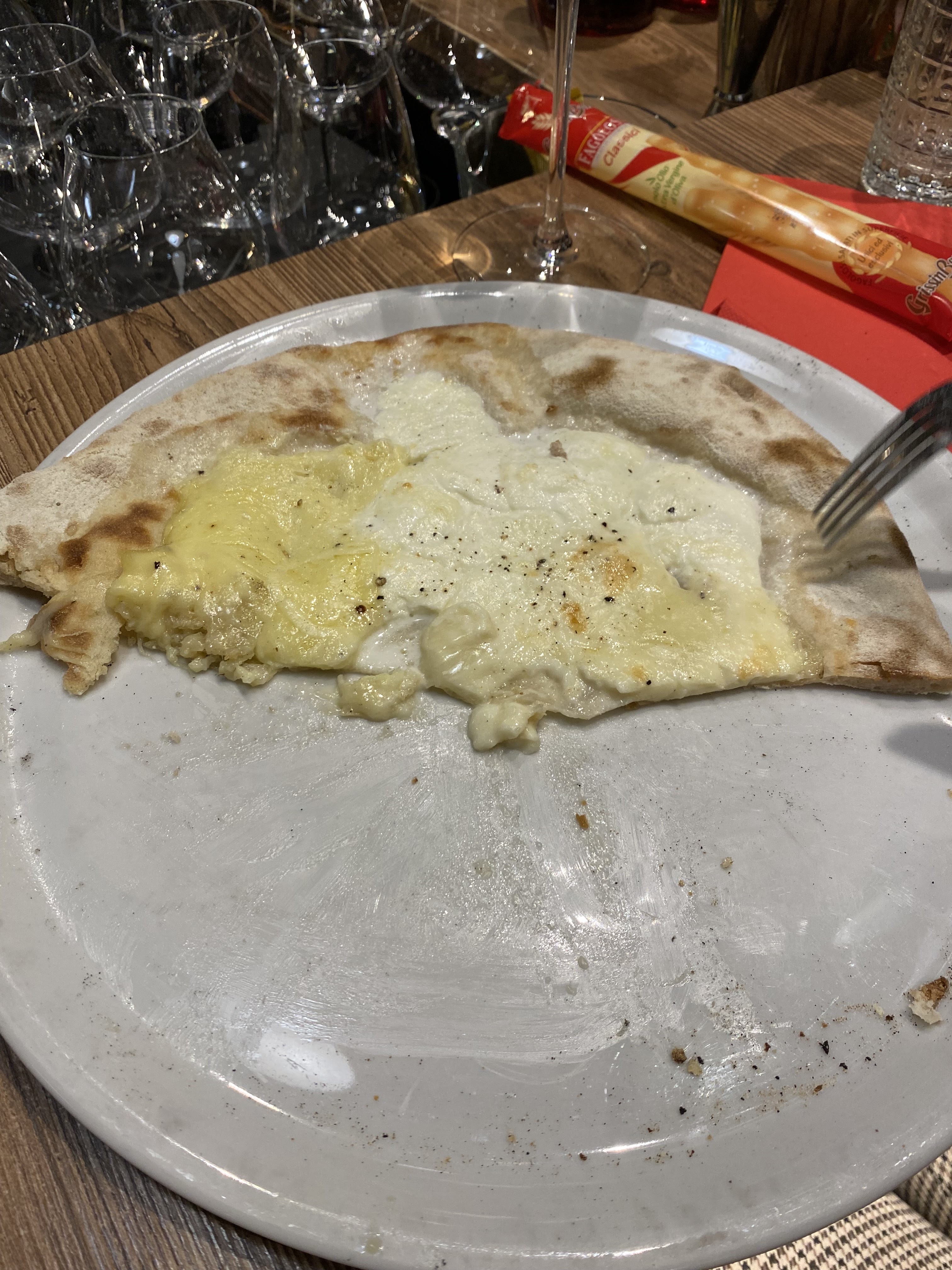 Les pizzas sont bonnes, mais certaines mériteraient d'être un peu plus fournies en fromage. La pizza 4 fromages présente l'avantage d'être garnie uniquement de fromages italiens, ce qui change des pizzas classiques. Les pâtes fraîches sont bonnes également, dommage qu'elles soient servies tièdes plutôt que chaudes. La carte des vins propose des vins bio italiens très bien et à un prix abordable. Il serait intéressant d'accompagner l'apéritif d'un petit quelque chose à grignoter comme cela se fait dans de nombreux restaurants. Le service est aimable et rapide. Je suis déjà venue deux fois, je reviendrai.