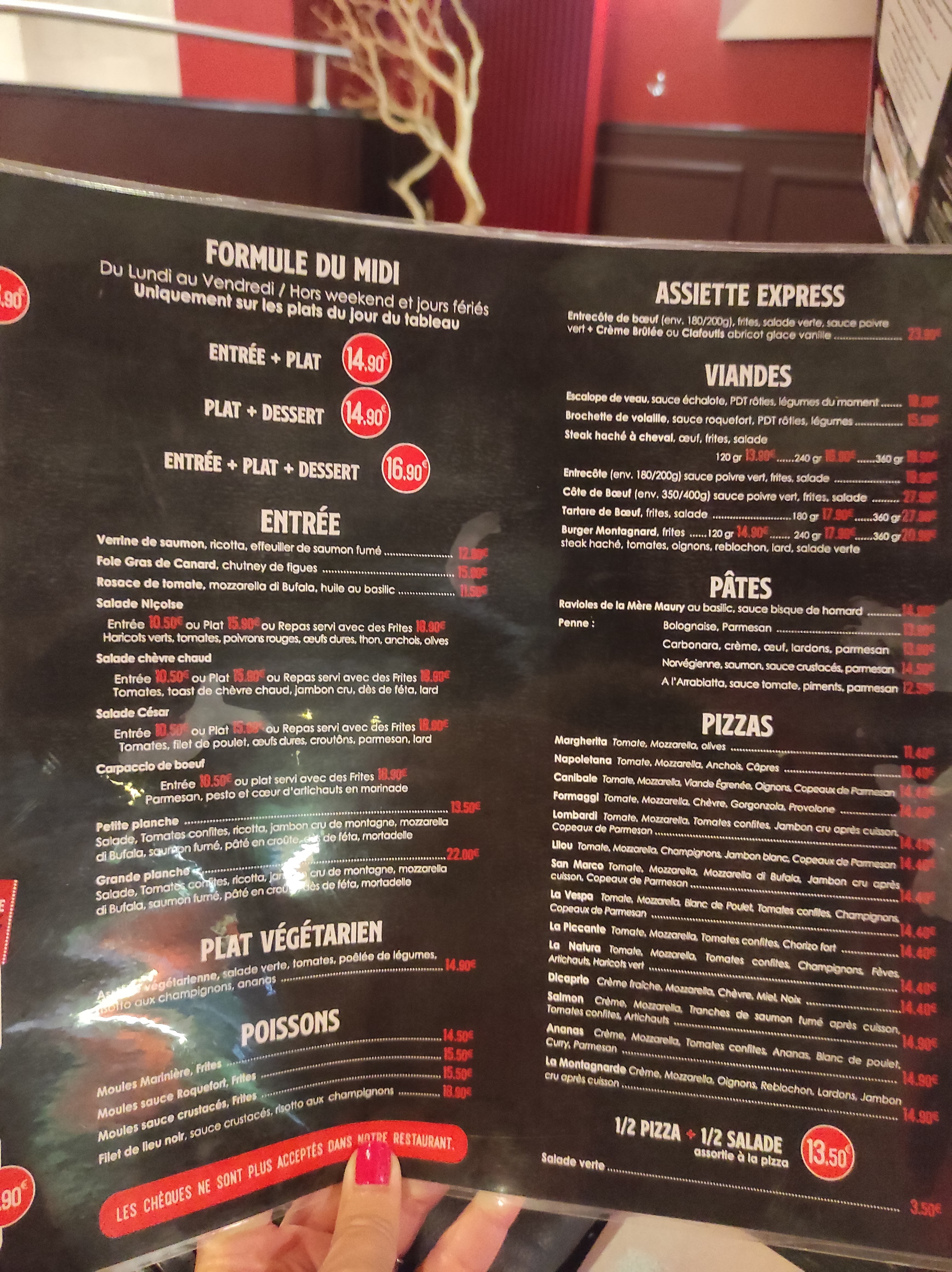 Nous avons mangé à 2, le premier plat, les moules n'était pas assez cuite et de mauvaise qualité, le second plat un steak donc la taille laisse a désiré et pas cuit correctement. De plus le serveur mou sans aucune conviction et qui n'arrête pas de dire monsieur et madame alors que nous étions 2 hommes à table. Quand on arrive à ce niveau vaut mieux éviter des métiers ou on a à faire à des clients. Je déconseille et demande de passer votre chemin.