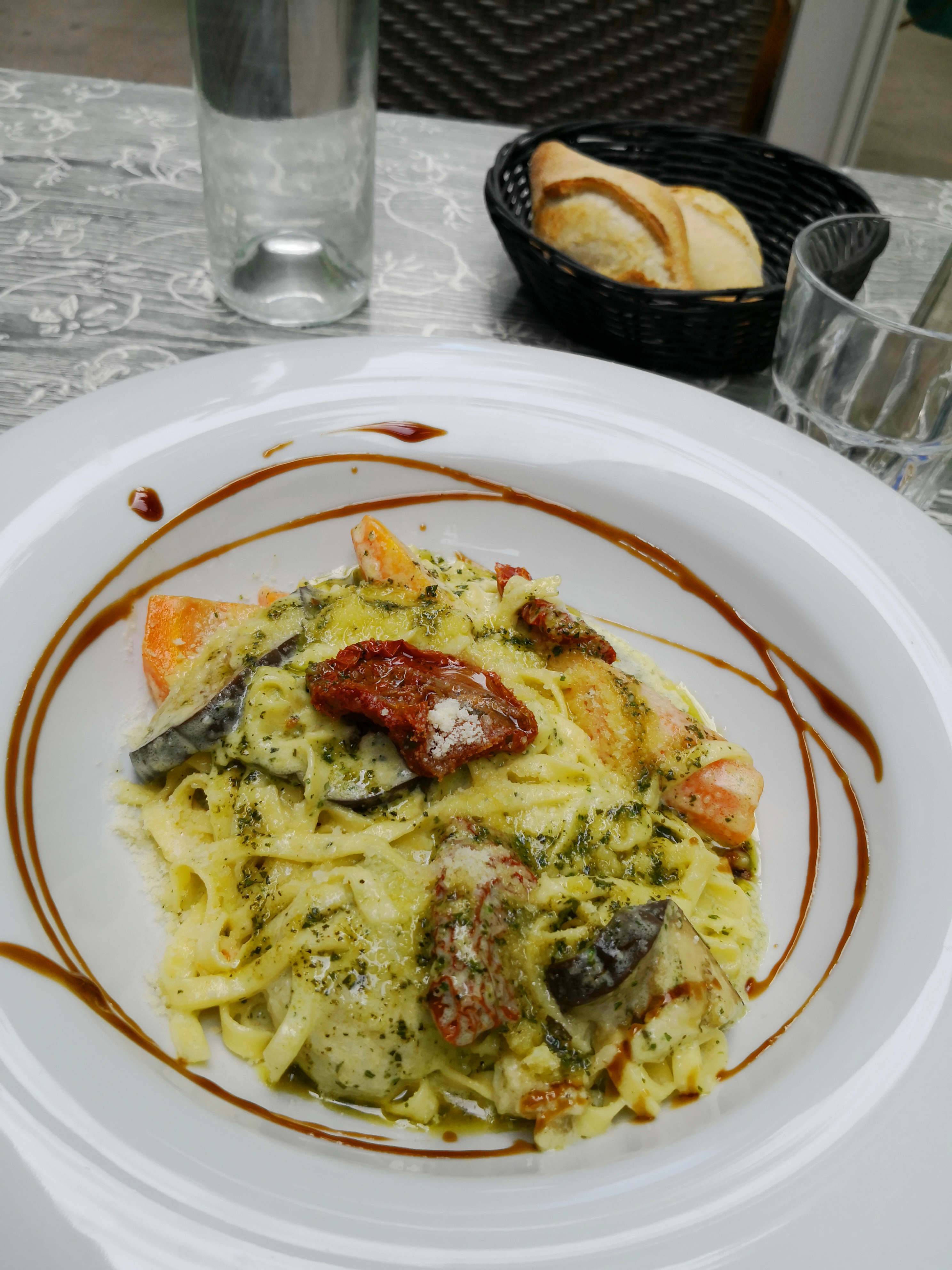 Les repas sont bon en tout cas pour la pizza vespa et l’hamburger . Cependant, le service est à revoir. Il y a une seule serveuse qui nous à oublié du début jusqu’à la fin. Lorsqu’on s’installe elle nous donne les cartes mais pas d’eau. Les 15 minutes d’après elle n’est pas venue nous voir, puis nous dit clairement qu’elle nous avais oublié (« je ne voyais plus votre table ») . On lui demande de l’eau après lui avoir dit ce qu’on voulait manger. Quand elle nous amène nos plats toujours pas d’eau , on lui en redemande donc mais au bout de 5minutes elle n’est toujours pas revenue avec une carafe . J’ai donc dû me lever pour aller chercher moi même une carafe au comptoir. 3-4 minutes après avoir ramené la carafe elle arrive avec une carafe mais bon c’est déjà trop tard . Elle n’a pas non plus été capable de nous décrire ce qu’il y avait dans la sauce crustacé. A la fin je me lève pour payer et elle ne savait même pas le numéro de notre table tellement notre table fut inexistante. Il n’y a eu que la nourriture qui a sauvé le moment.