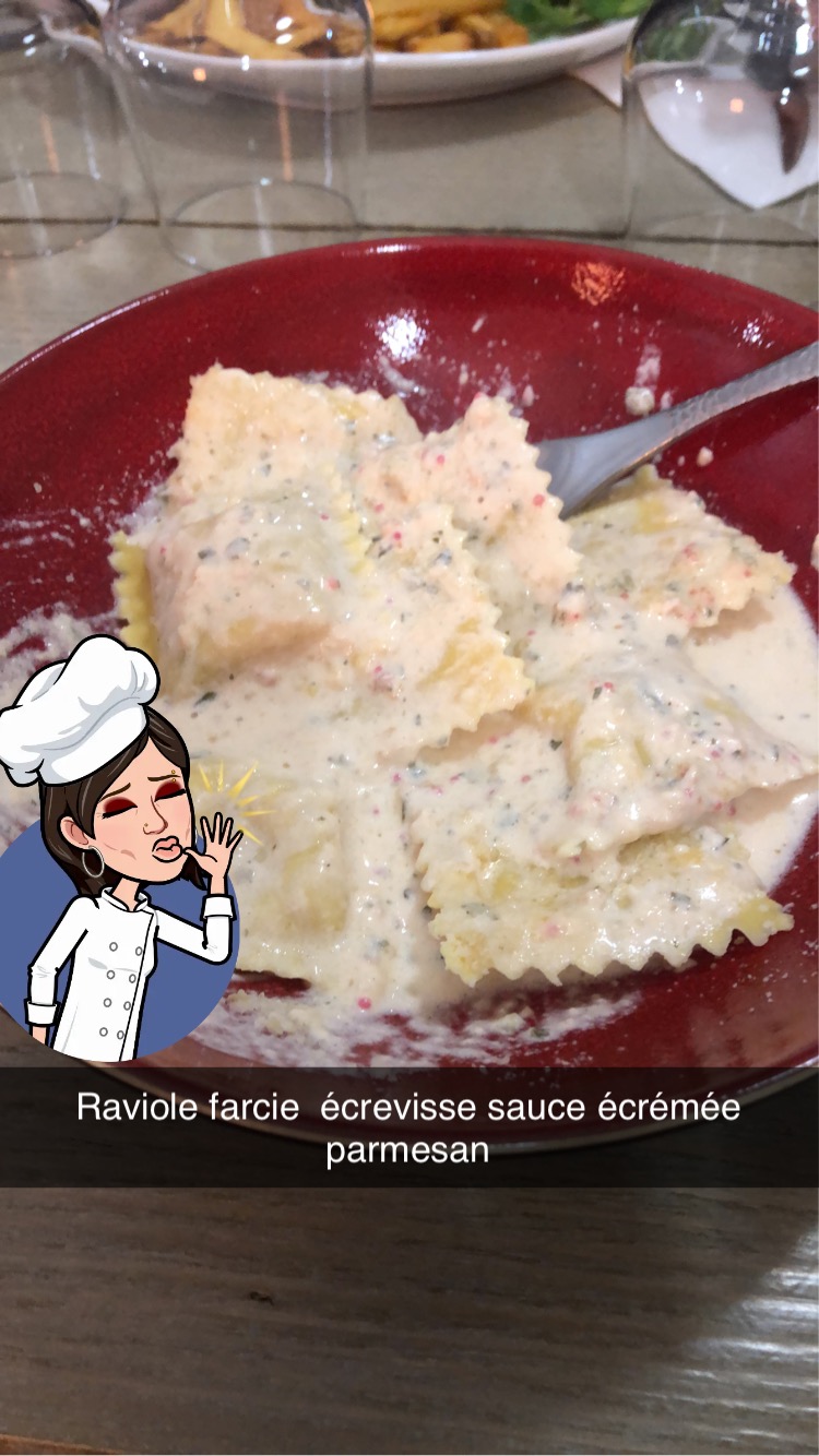 Petit resto qui ne paye pas de mine, ambiance troquet dans une vieille maison mais très propre. J'ai goûté la suggestion du jour, des ravioles à la burrata et tomates confites, sauce parmesan. Très bon, sans doute cuisine maison.
