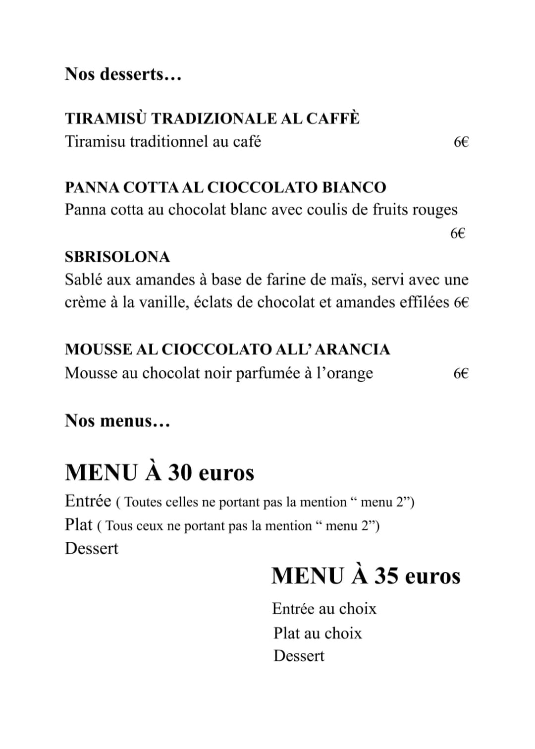 Un menu abordable (30€) et une belle cuisine italienne avec l'accent s'il vous plaît. Nous nous sommes régalés sur les entrées. Nous reviendrons si nous repassons dans la région.