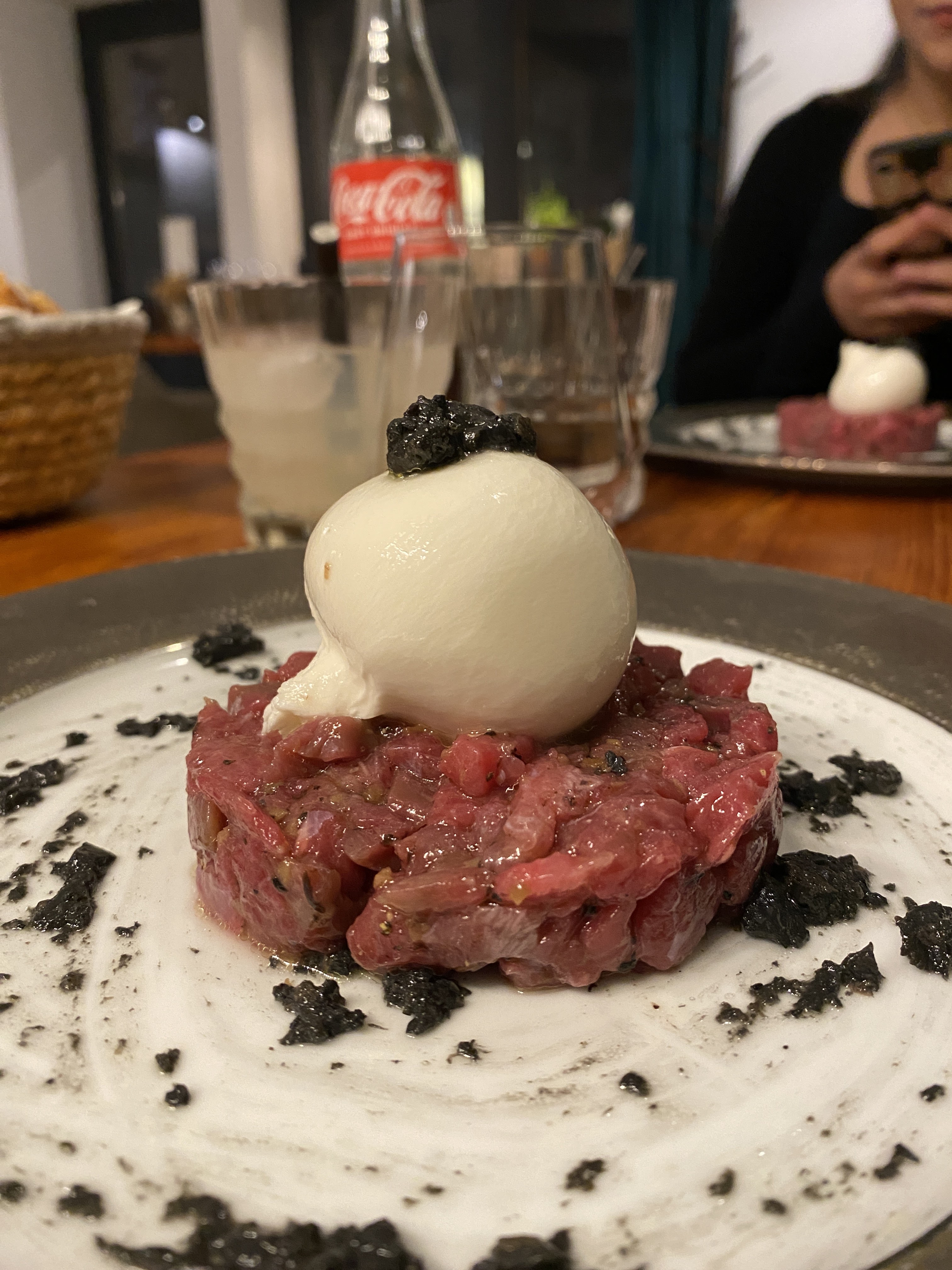 Belle découverte culinaire. Le tartare de bœuf à la truffe, un régal ! La truffe répandait une odeur dingue dans toute la salle ...