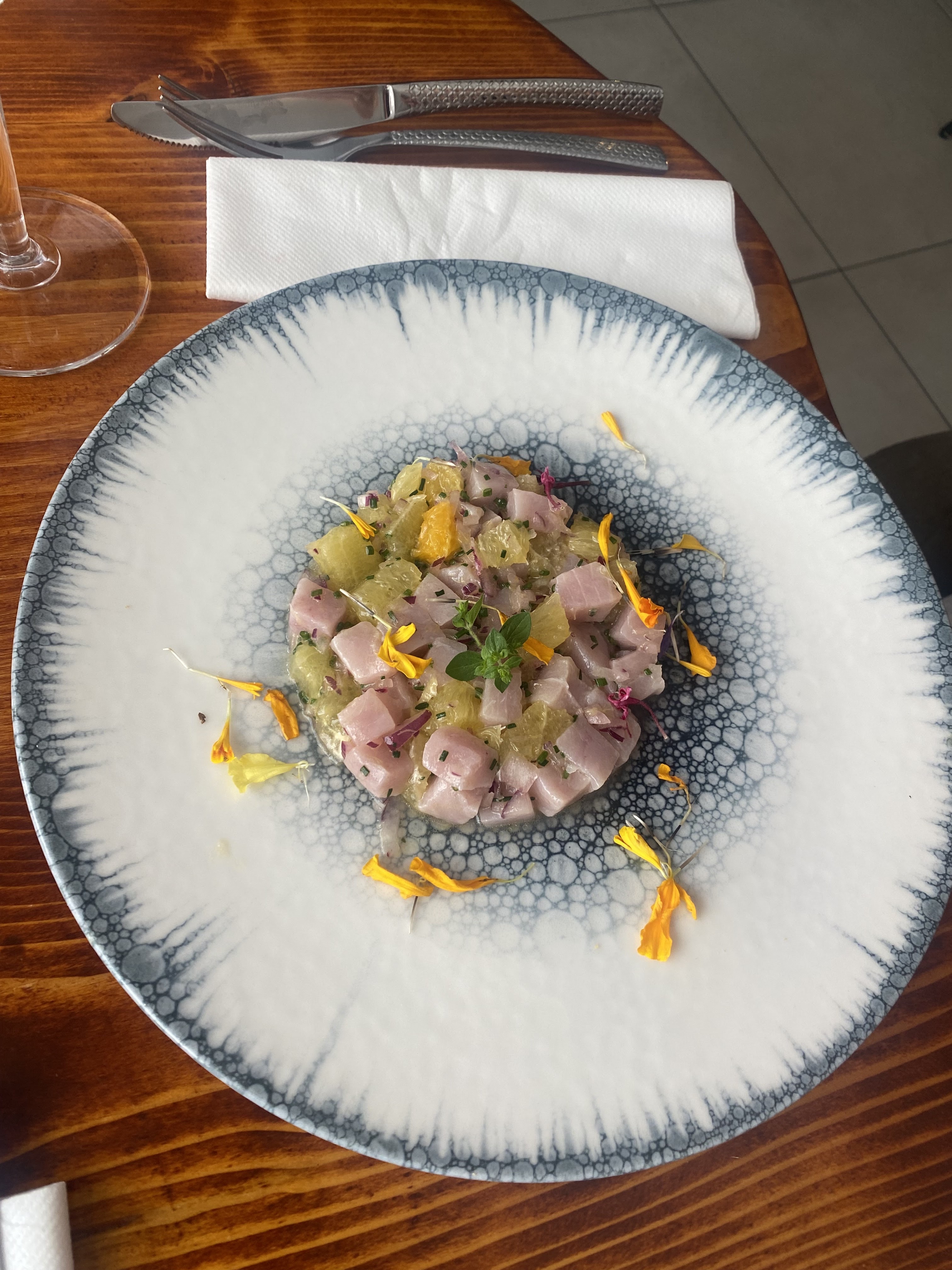 Tout d’abord une petite ligne sur le personnel qui est présent pour les clients et très aimable (ce qui est parfois rare de nos jours). Le repas a commencé avec une belle entrée en matière (et c’est le cas de le dire) car les entrées étaient très raffinées et légères, idéales pour cet été chaleureux. Le plat de résistance vient alors vous saisir les papilles afin de vous emmener au sommet de la découverte gustative. Divers arômes se mélangent mais restent discernables et s’harmonisent parfaitement. Enfin le dessert permet de terminer sur une petite note sucrée en toute légèreté. Je recommande donc ce restaurant sans hésitation.