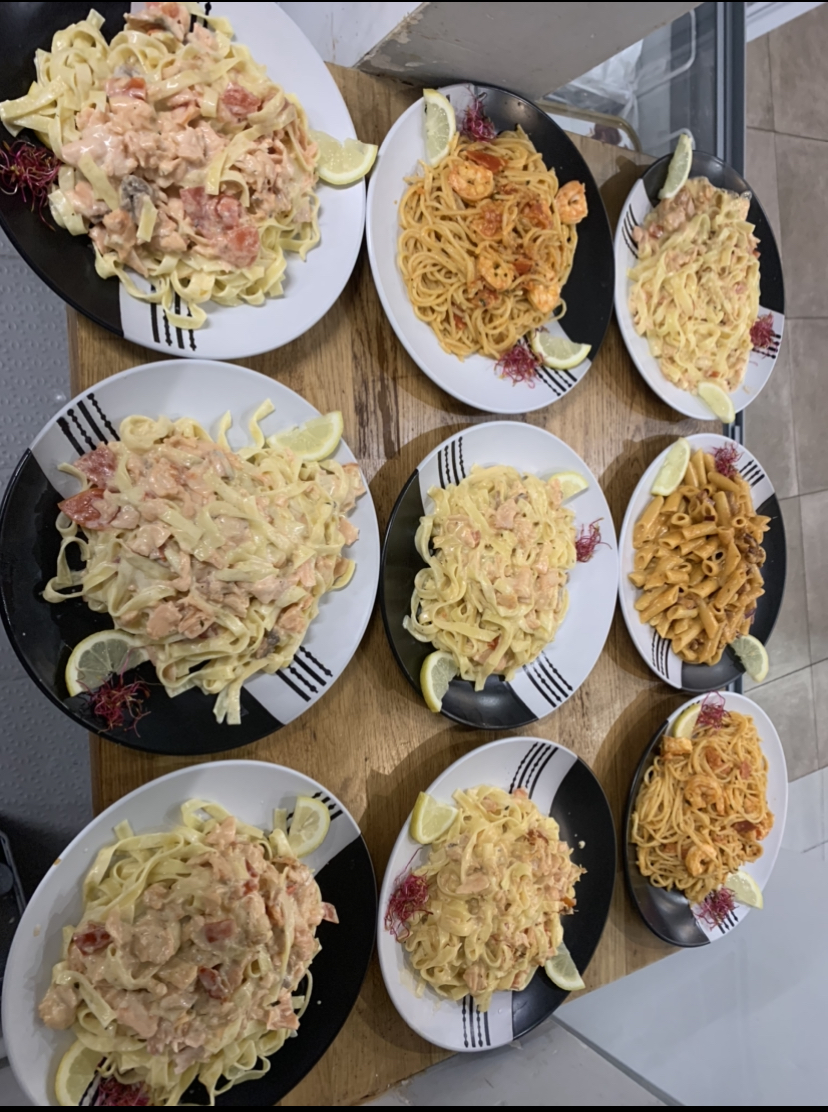 Presque parfait c était très bon Pattes au scampi et pizza