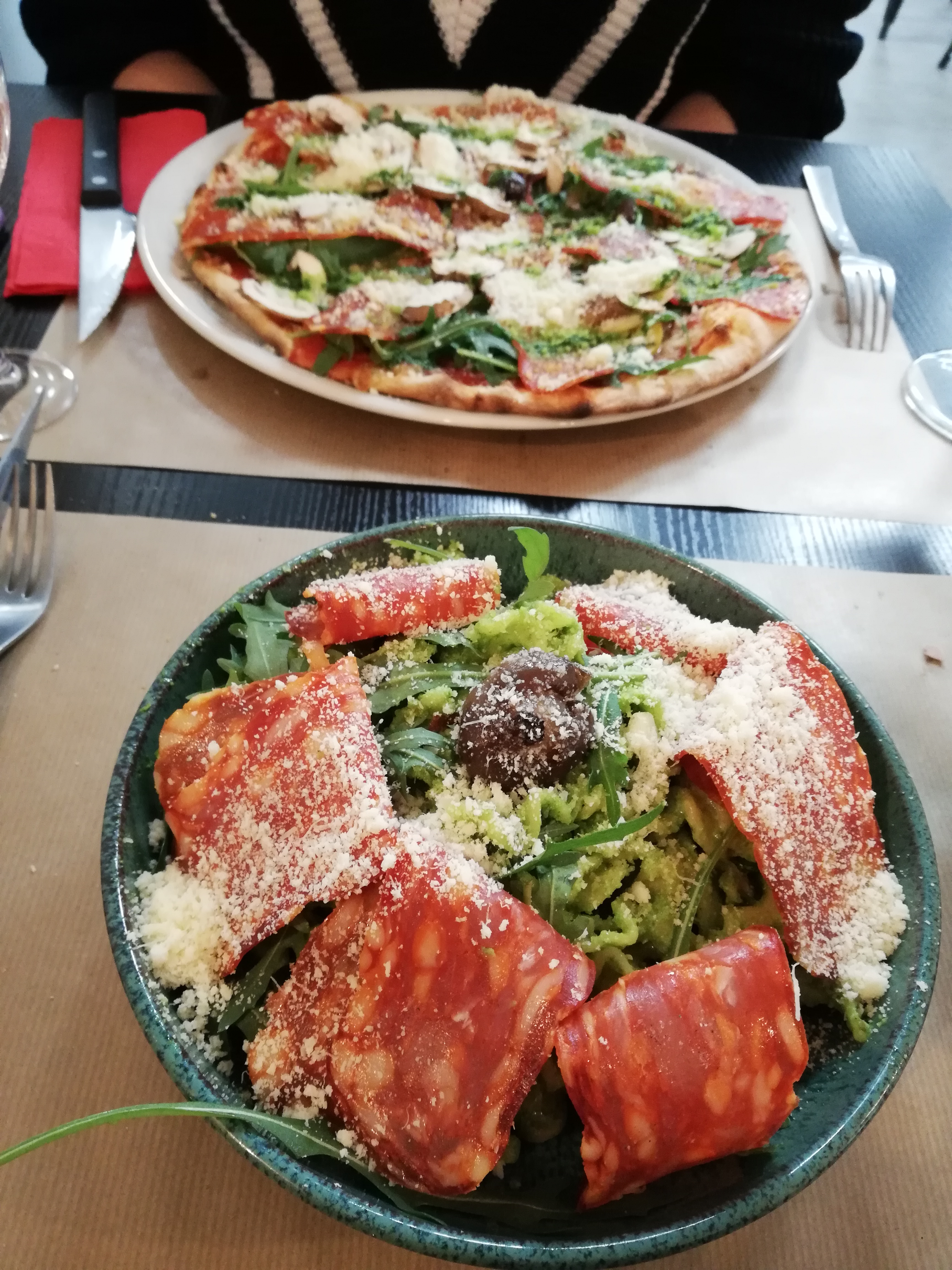 Accueil et ambiance sympathique, nous avons pris 2 pastas pesto chorizo, UN PUR DELICE 👍👍👍 et 2 tiramisus qui était très bon. Nous recommandons vivement ce restaurant 👌👏👏👏
