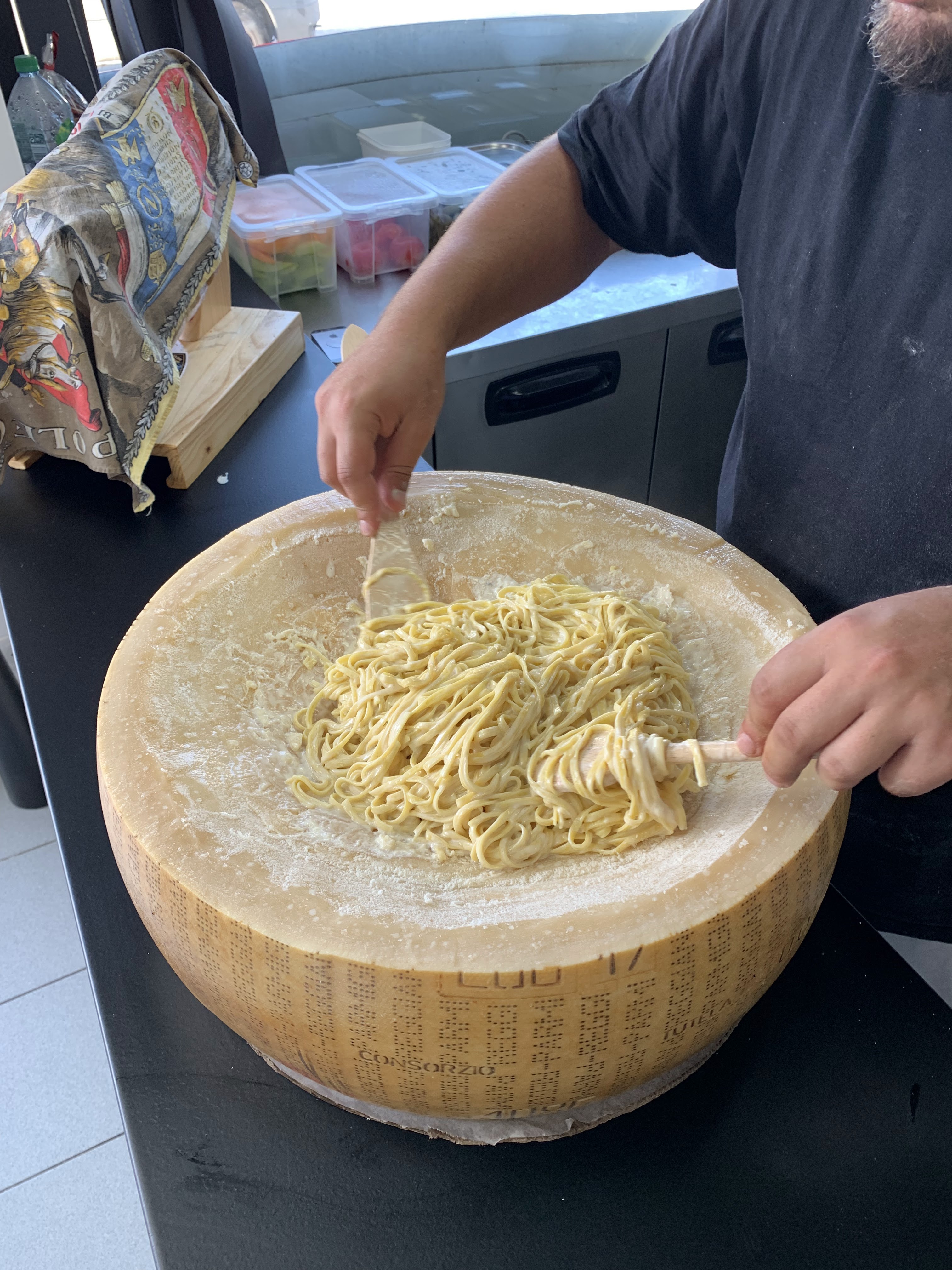 Pâtes pas cuites et non servies dans une meule comme proposé. Les clients de la terrasse (habitués )désagréables. Eh patron augmentez vite le serveur qu il s achéte une ceinture pour son pantalon ça fait crade vraiment.