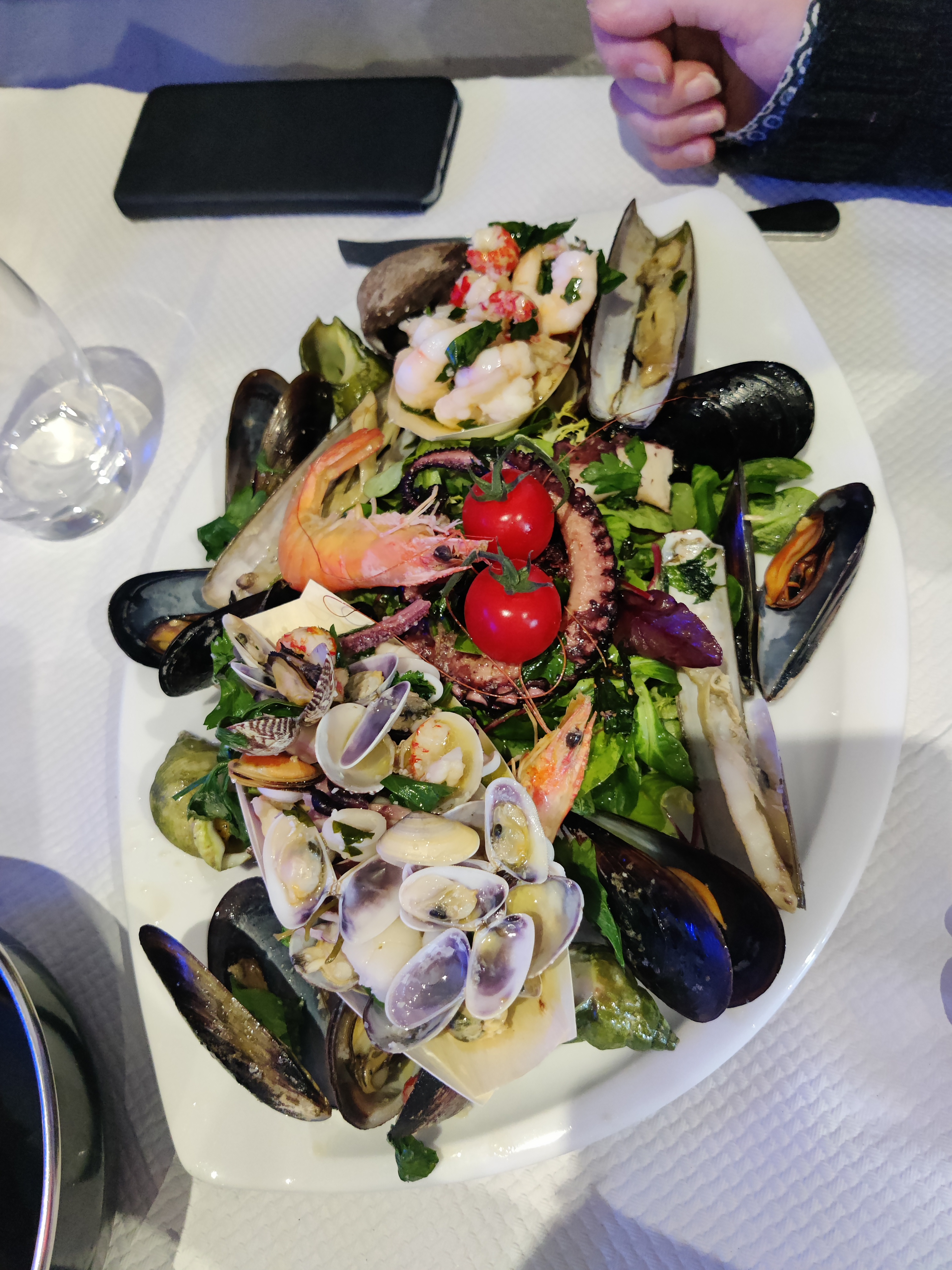 Très bons plats de fruits de mer et poissons, pastas divines, Risotto incroyable et des pizzas délicieuses. Le tout accompagné de très bons vins italiens . Ambiance chaleureuse et magnifique terrasse. Je recommande 👍👍