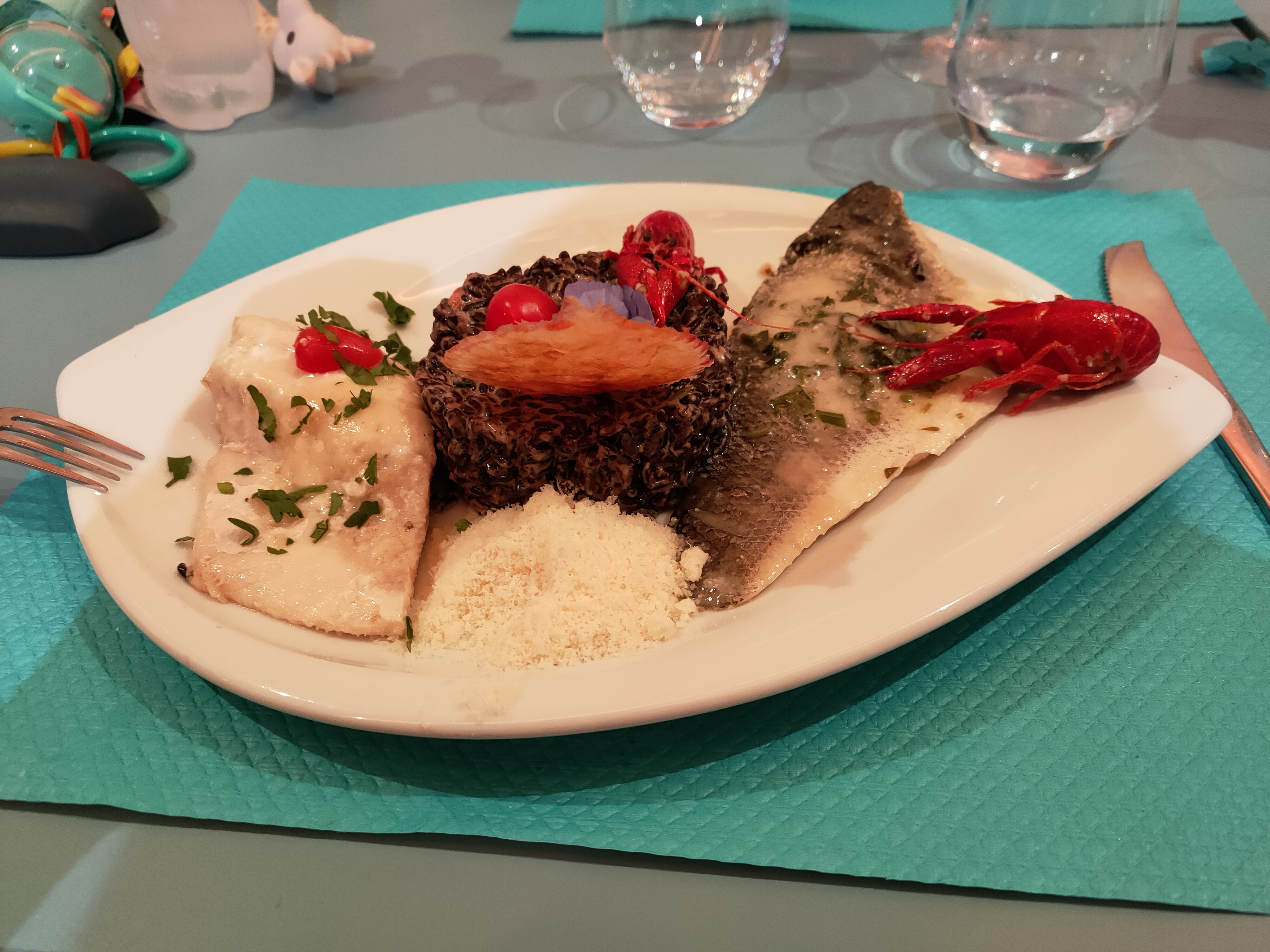 Une surprise !!la cuisine est excellente, cette préparation,le duo de poissons et cette araignée au risotto,un délice au regard et très bien préparée. Le vin proposé pour ce repas ne pouvait pas être meilleur choix. Nous reviendrons c'est certain !!!😋😋👍🏻