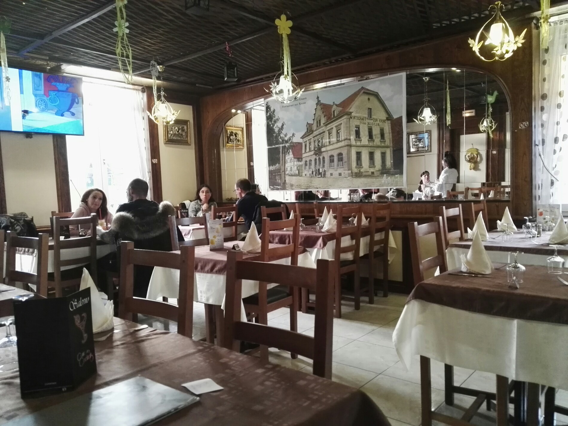 Une superbe carte très correcte niveau prix et une viande succulente !! J'ai rarement mangé un filet de boeuf si fondant en bouche ! Des dessins animés vintage pour que les enfants soient sages, il fallait y penser... On a passé un bon moment et très bien mangé !!