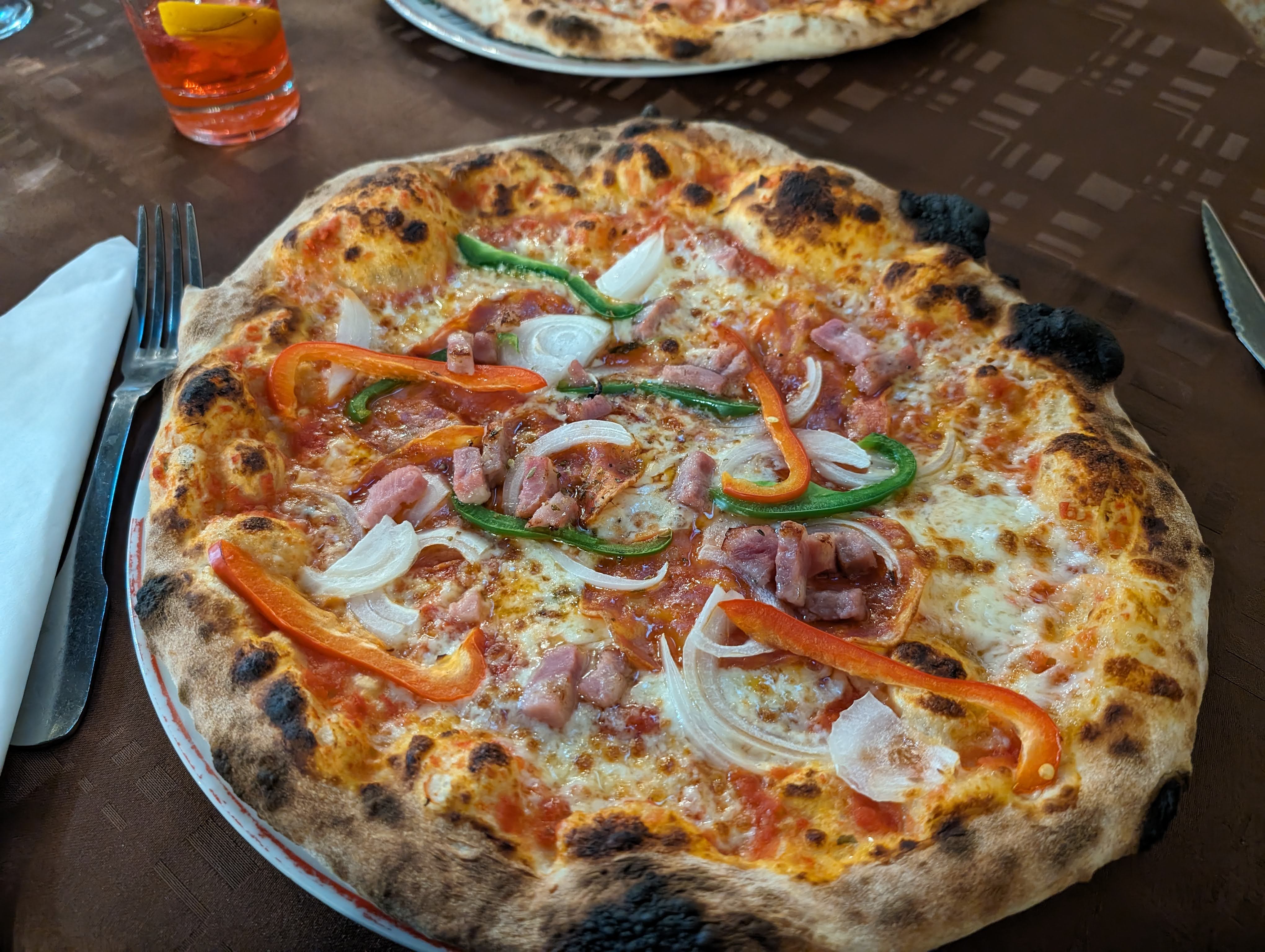 De bonnes pizzas, le Spritz etait lui un peu petit pour le prix, bonne sauce piquante