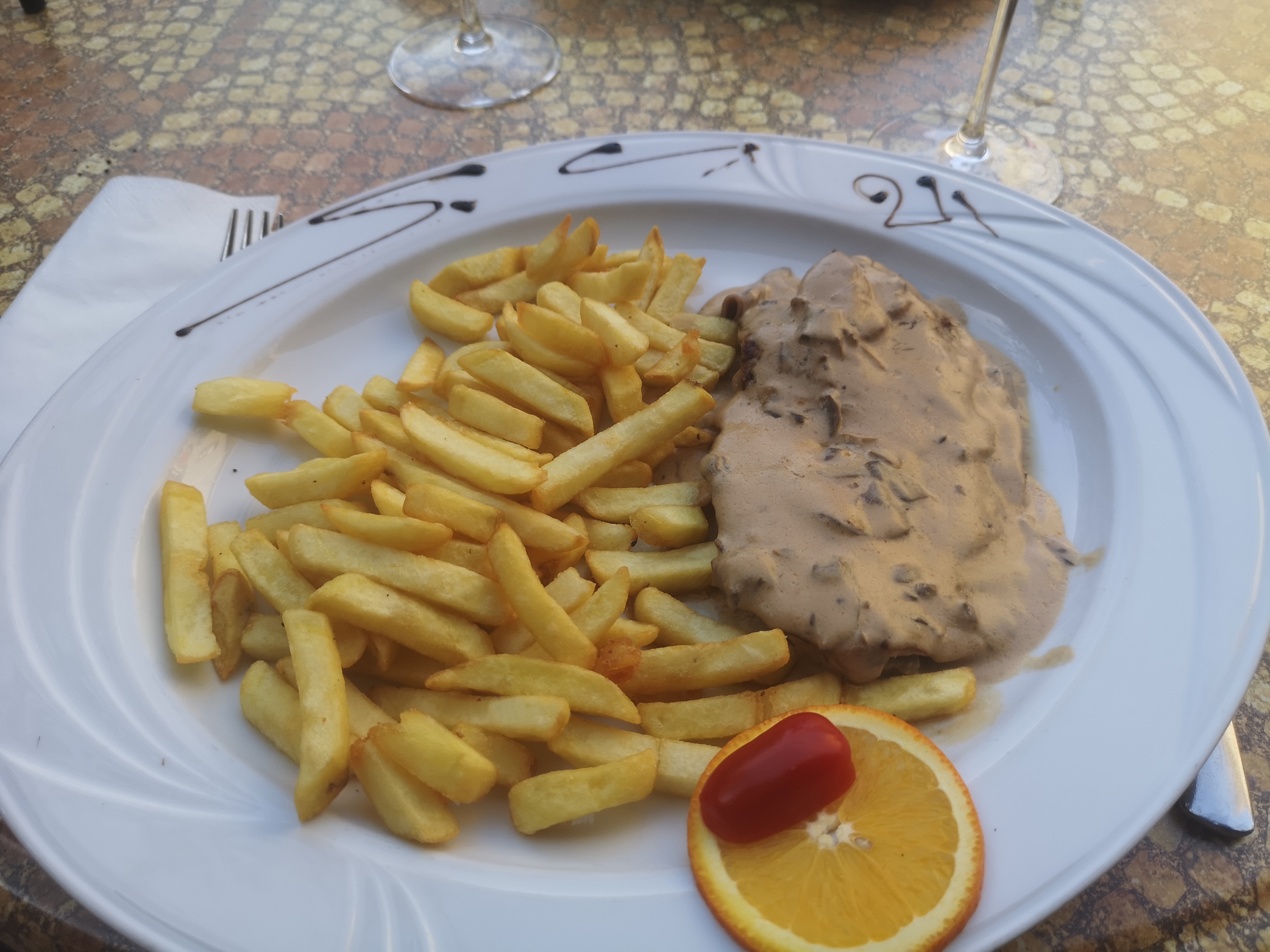 Cuisine pleine d huile.. Attention au menu du jour,ils facturent le café meme si vous n avez pas pris de dessert du jour.on a eut la surprise ... (formule du jour entré plat dessert ou café )a mediter