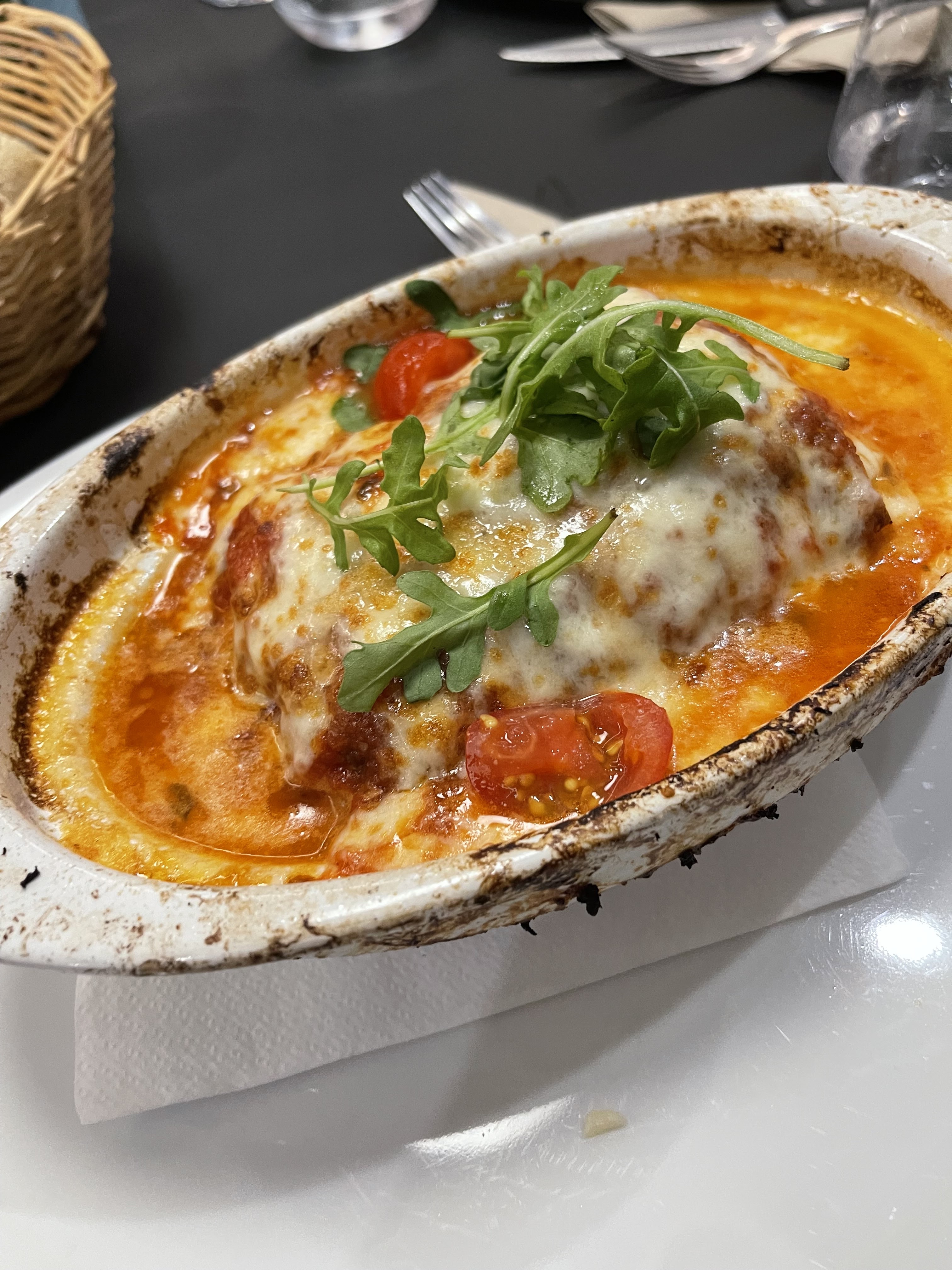 Certains plats sont bons pour le prix. pour le parmesan il ne faut pas s'attendre à un truc de fou pas vraiment de goût. la boule de mozzarella je ne pense pas que c'est de la dilate bufala. Pour les lasagnes je ne recommande pas du tout. Trop sèche cuite et recuites au four il reste pas grand-chose à manger dans le plat la pâte à lasagne est sèche immangeable pour moi rien du tout d'extraordinaire ce n'est pas pour ce plat que je reviendrai. Pour éviter la sécheresse du plat limite mettre un papier d'alu au-dessus ce qui permettrait déjà d'atténuer le plat trop chauffé. A revoir pour la cuisine mais le reste était au top. Serveur serveuse 👍👍